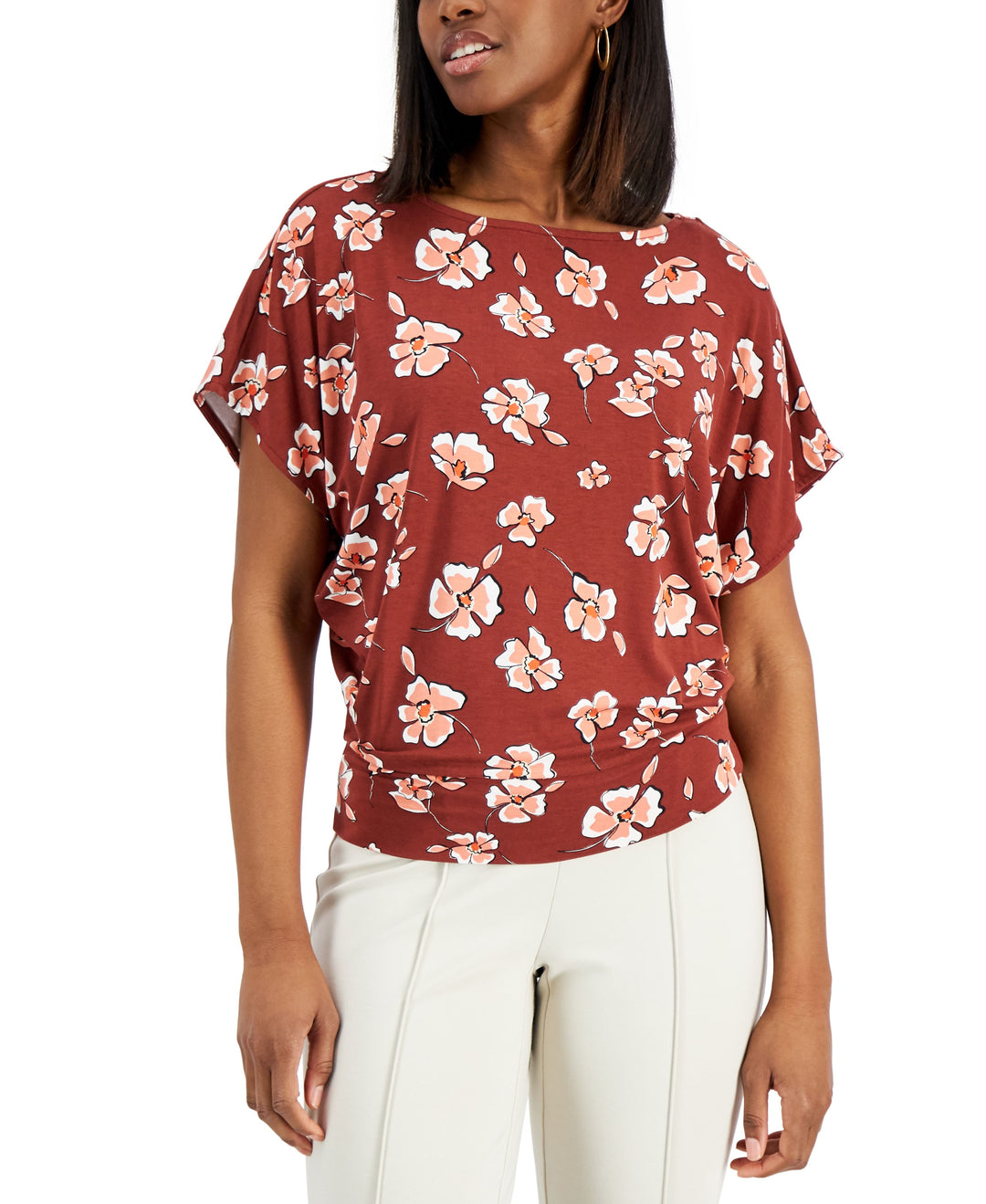 Alfani Printed Pleated Dolman Sleeve Top