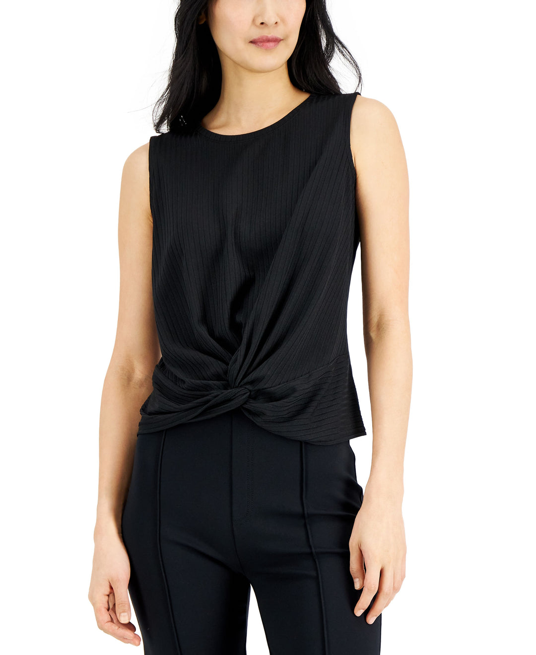 Alfani Womens Ribbed Twist Front Sleeveless Top