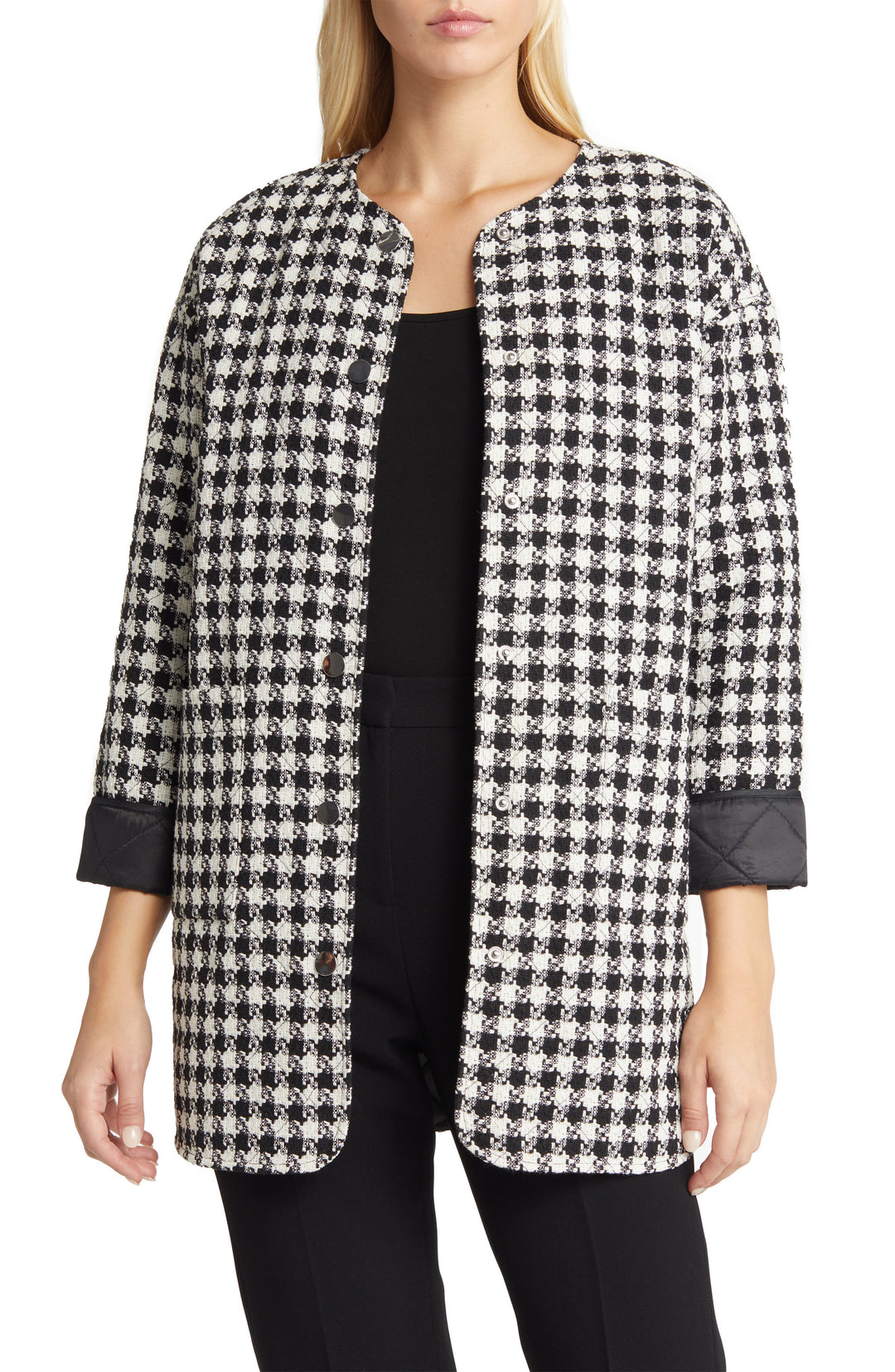 Anne Klein Houndstooth Long Sleeve Ruffle Hem Shift Dress