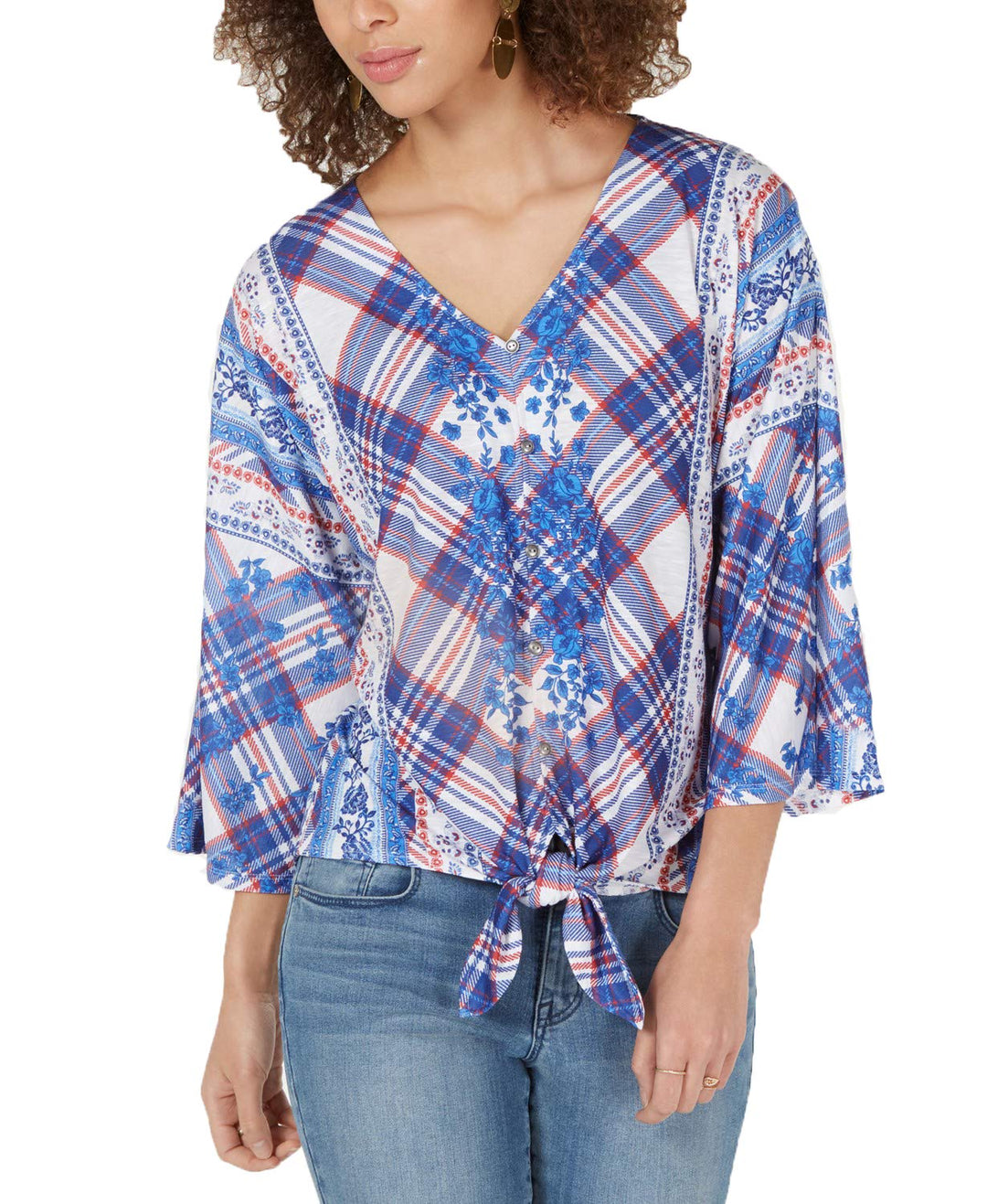 Printed Tie-Front Top