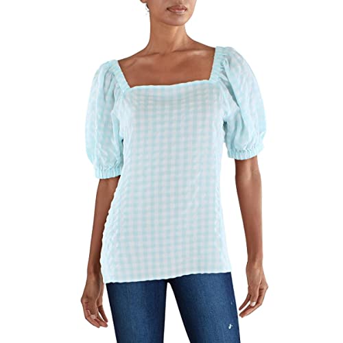 Anne Klein Womens Checkered Square-Neck Pullover Top