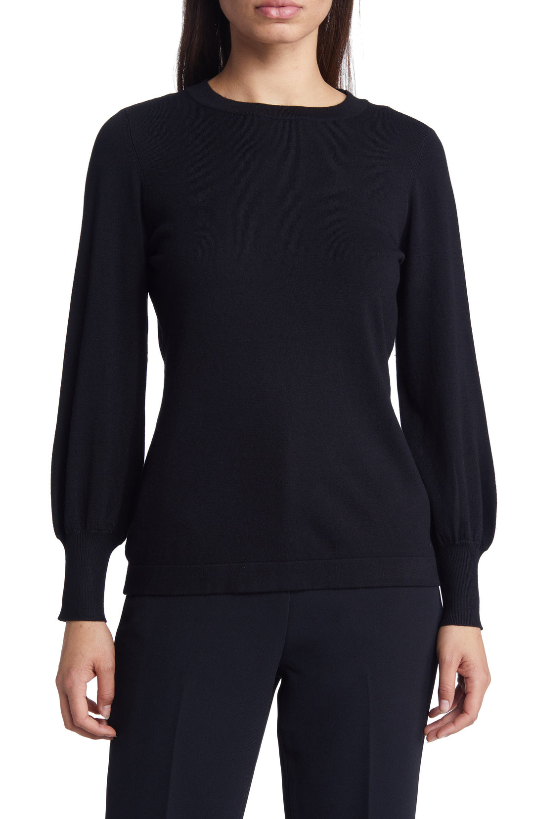 Anne Klein Womens Back Cut-Out Bishop Sleeves Pullover Top