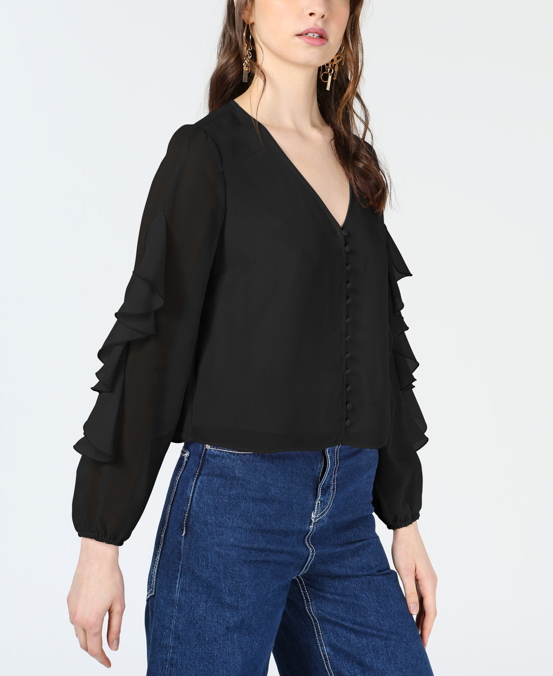 Ruffle-Sleeve Blouse and Pleated Midi Skirt