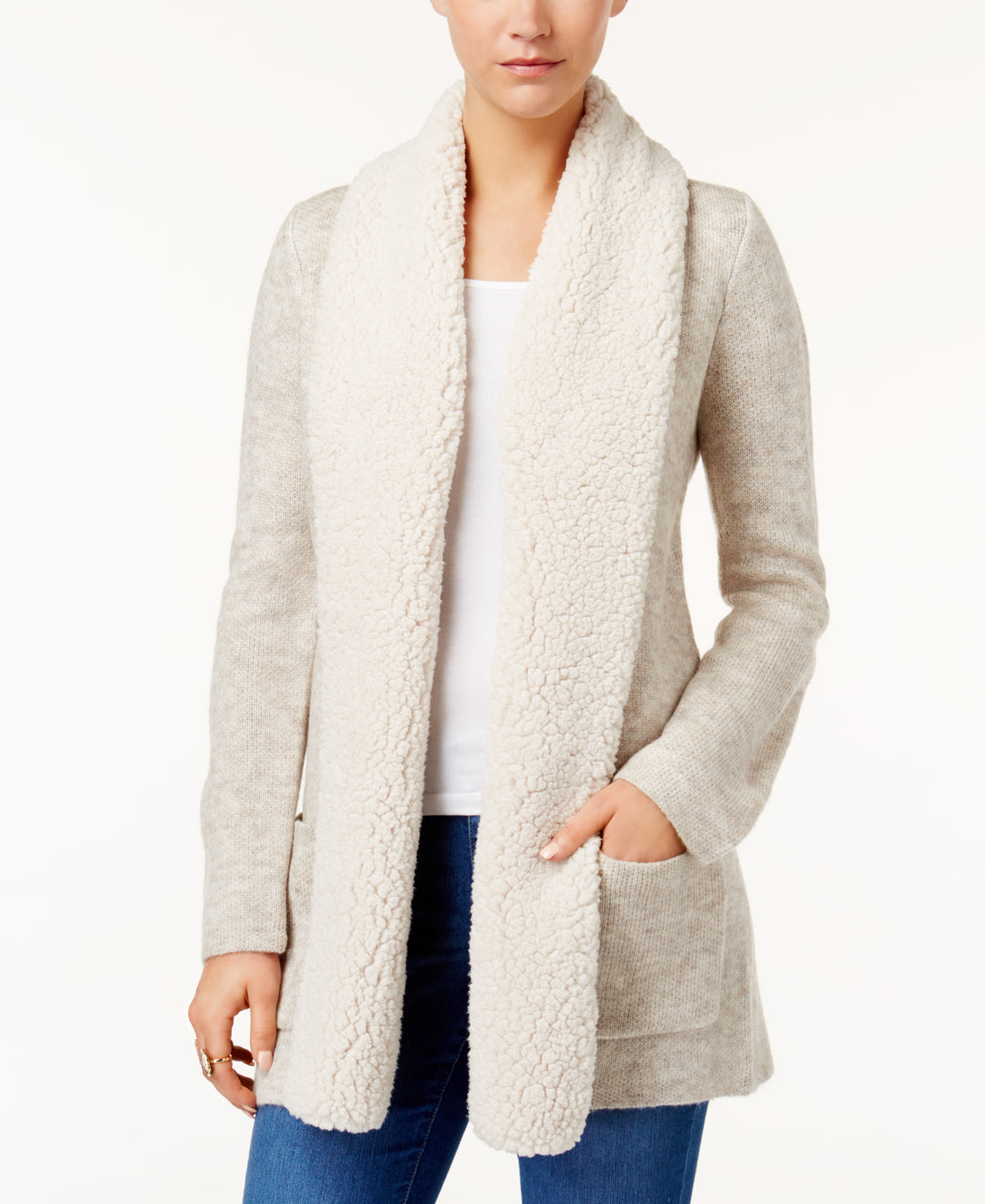 Sherpa Fleece-Collar Cardigan