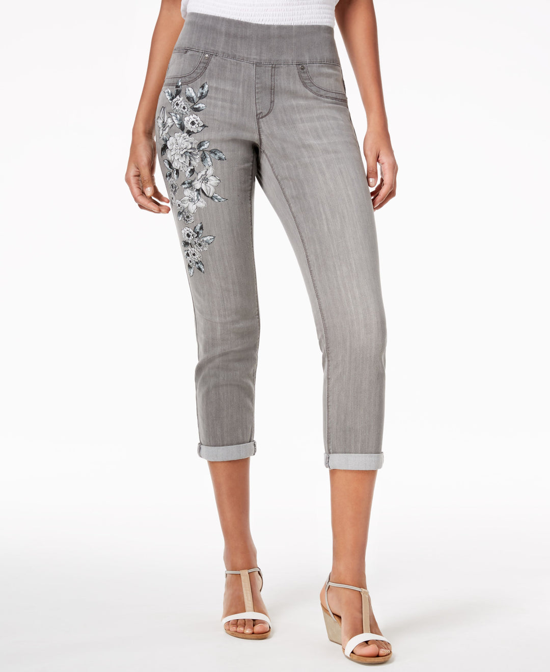 Style & Co Floral Print Pull On Boyfriend Jeans