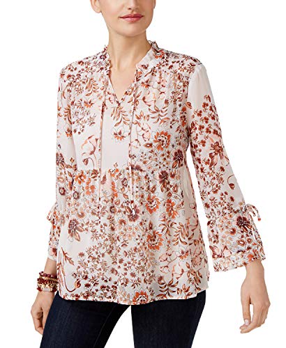 Style & Co Petite Floral Tie Neck Top