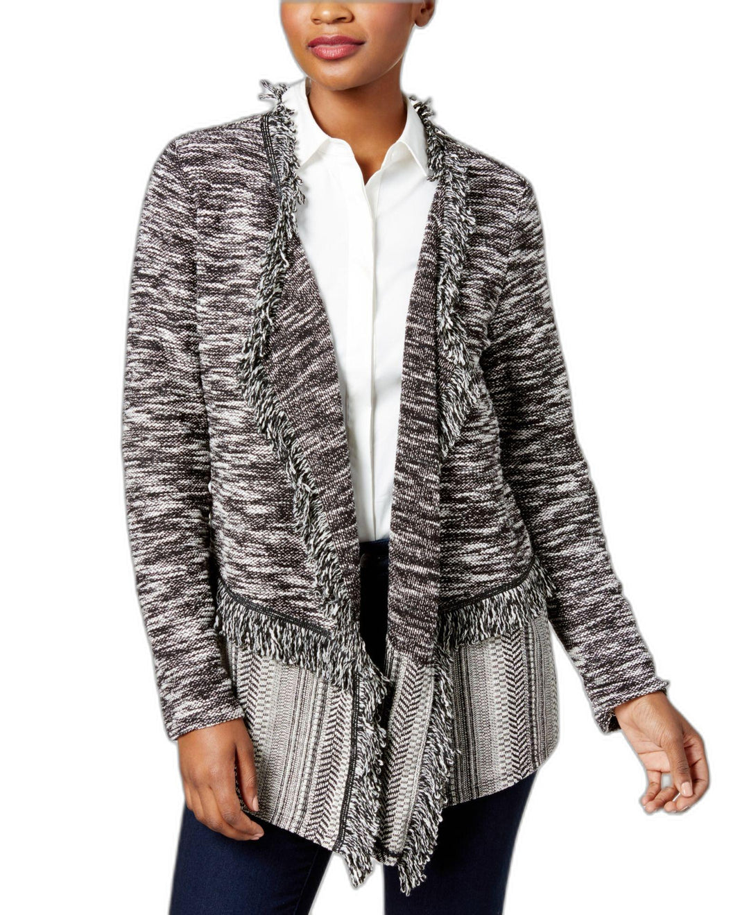 Style & Co Petite Fringe Trim Cardigan