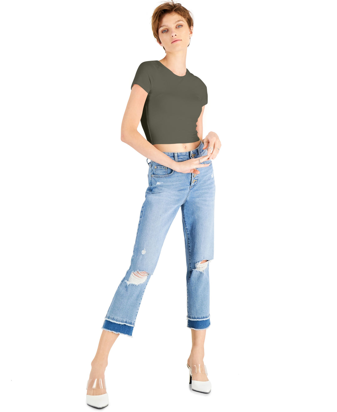 Bar III Contrast Stitch Layered Hem Fit Flare Dress
