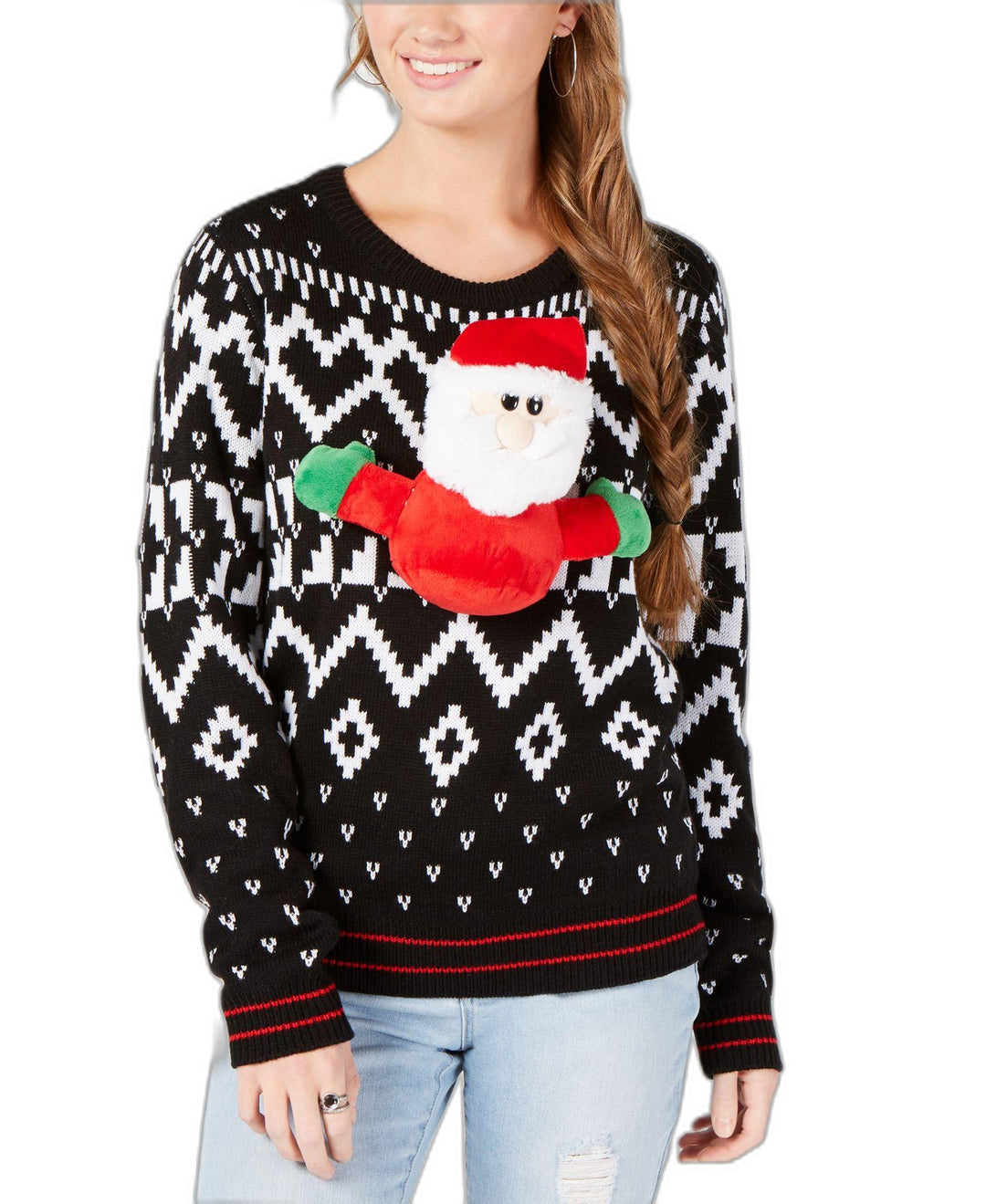 Ultra Flirt Juniors Stuffed Santa Printed Sweater