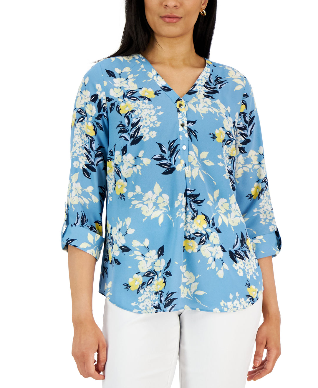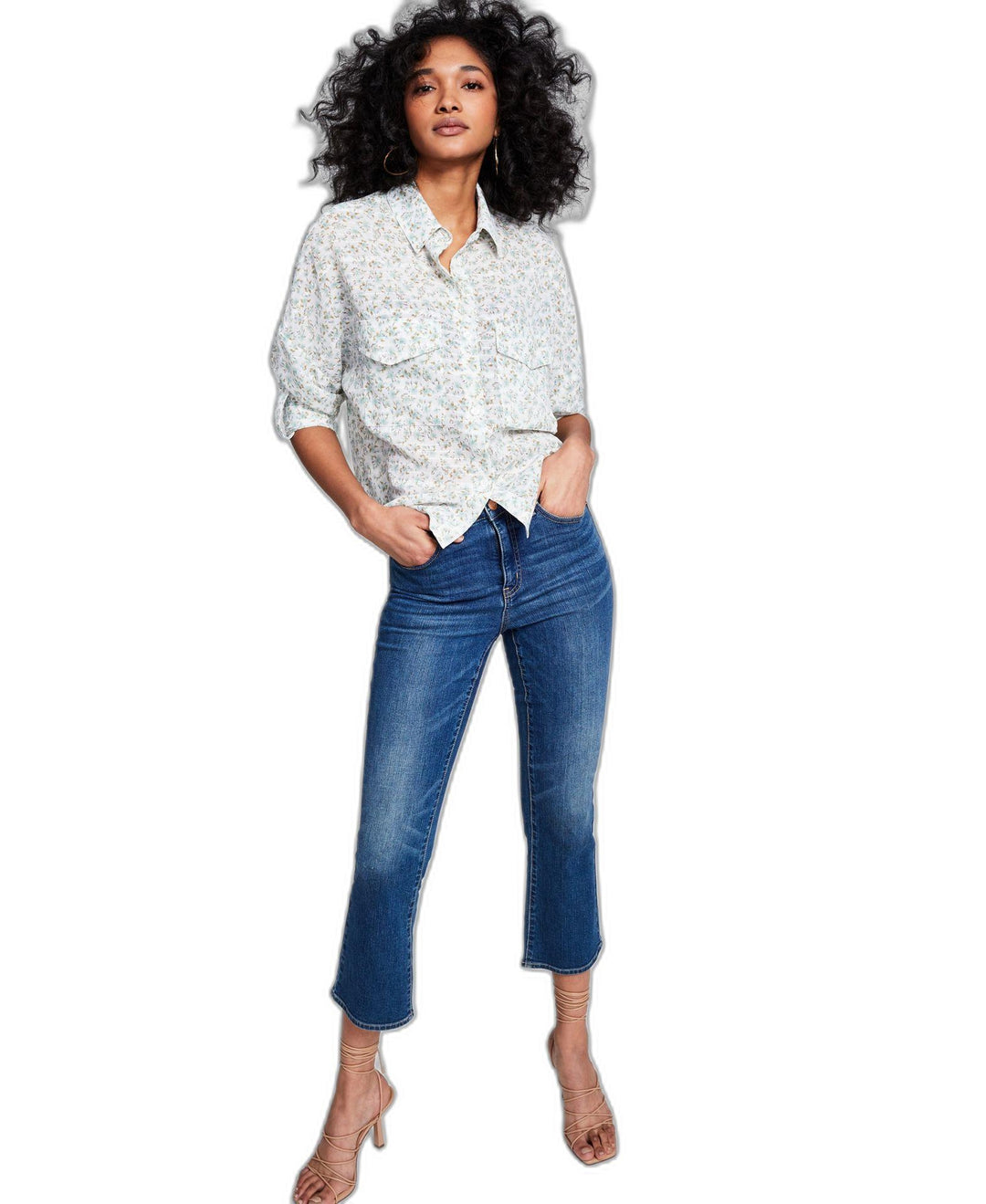 Women's Floral-Print Utility Shirt Blue Floral XS