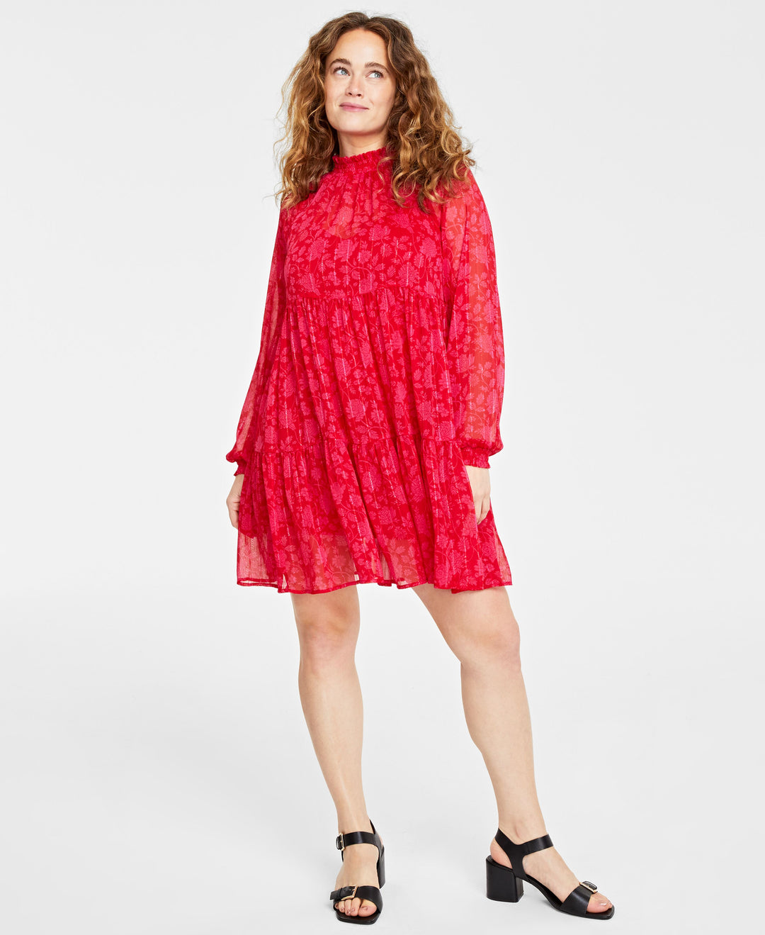 Women's Floral-Print Tie-Back Long-Sleeve Dress