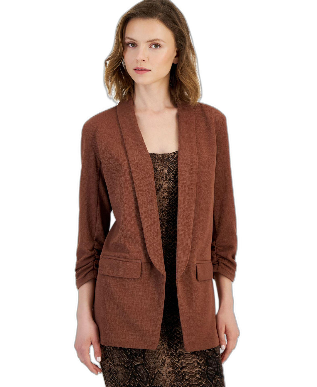 Women's Knit 3/4-Sleeve Boyfriend Blazer Root Beer S