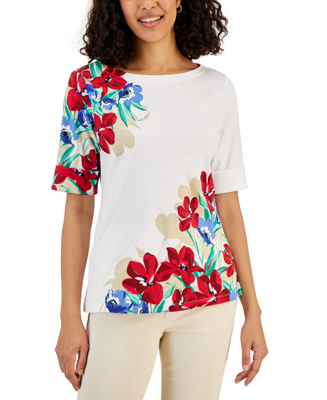 Women's Pima Cotton 3/4-Sleeve Boat-Neck Top, Regular & Petite