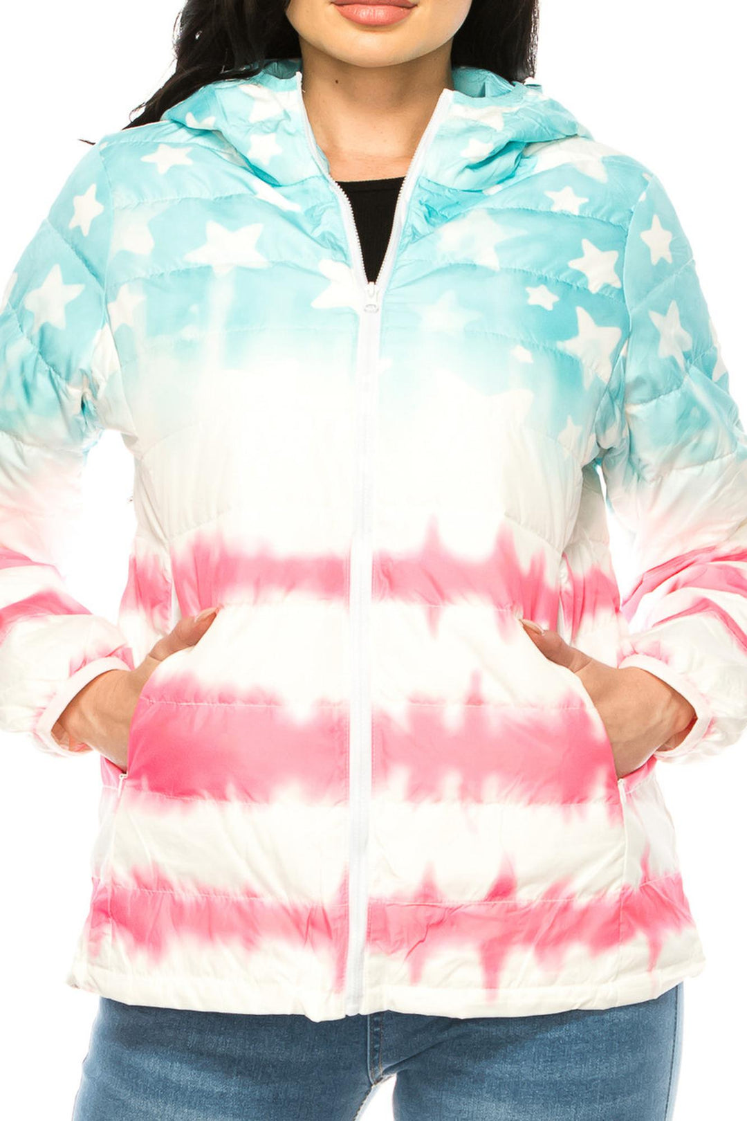 Women's Pink & Blue Star Daub Winter Puffer Down Jacket