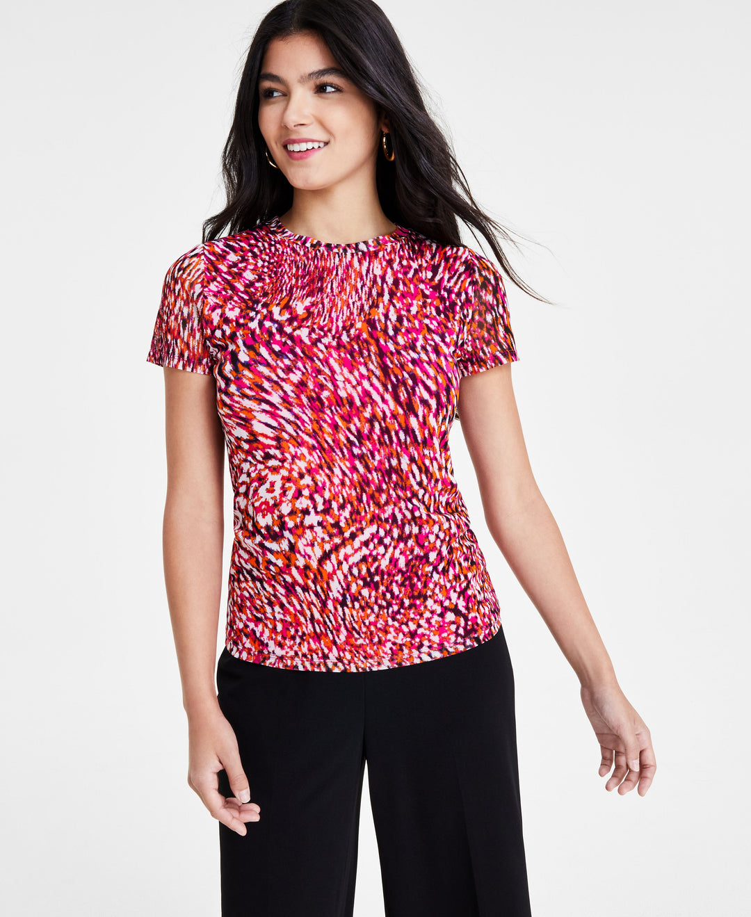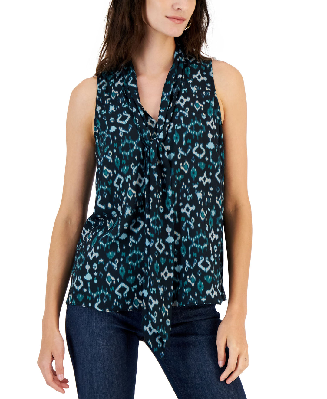 Women's Printed Tie-Neck Short-Sleeve Blouse Audrina Garden L