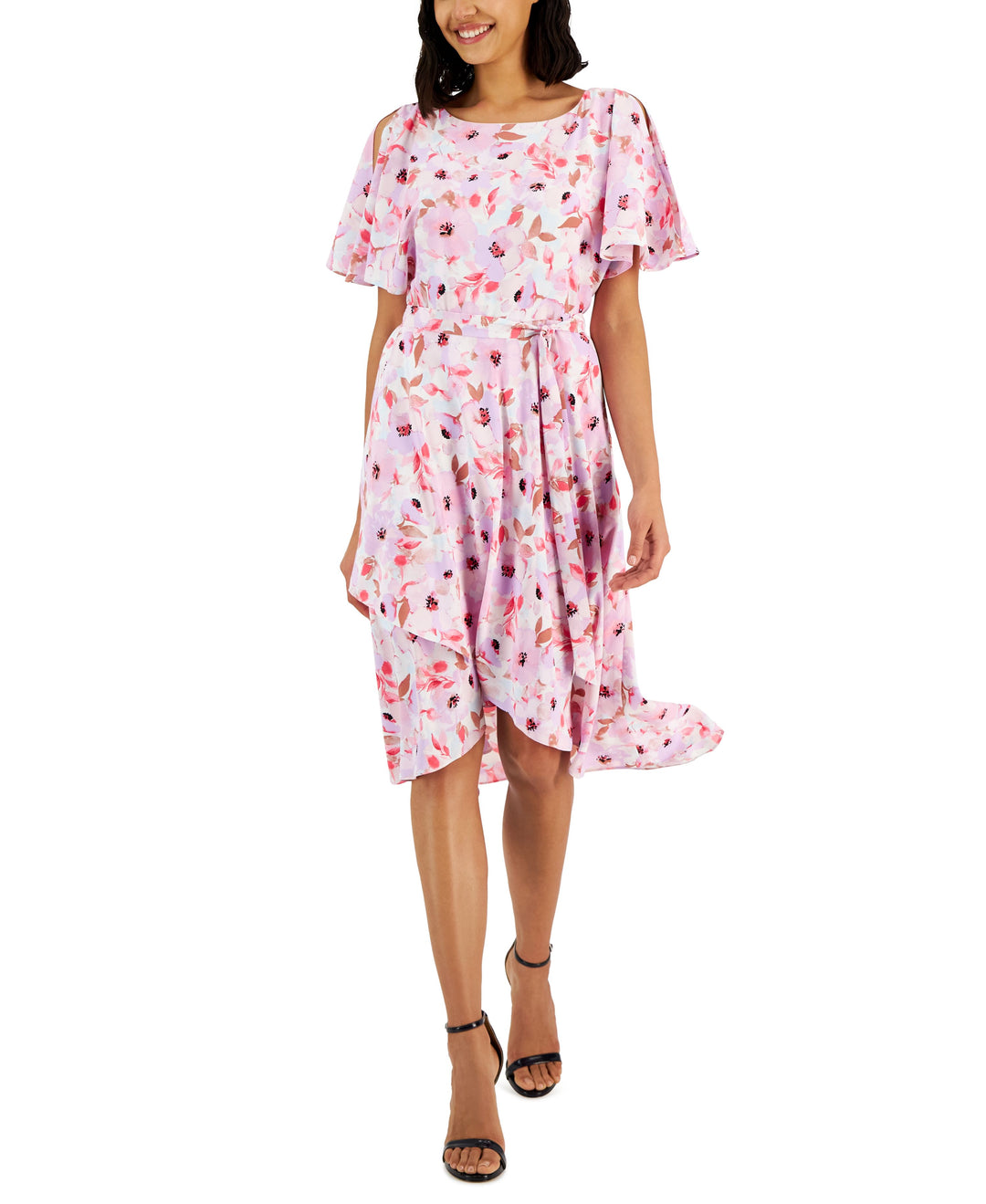 Women's Printed Slit-Shoulder Tie-Waist Dress