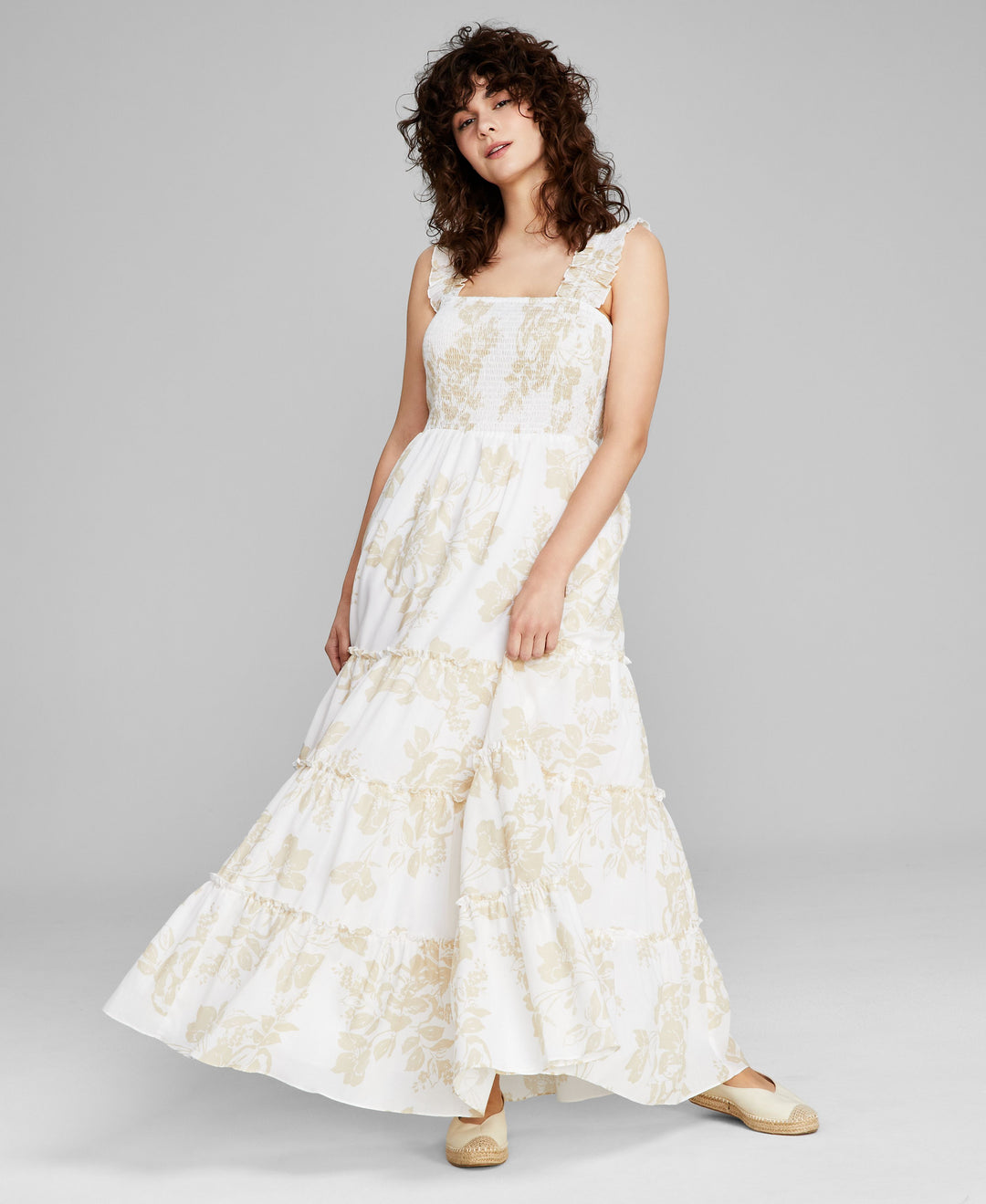 Women's Printed Smocked Sleeveless Tiered Maxi Dress