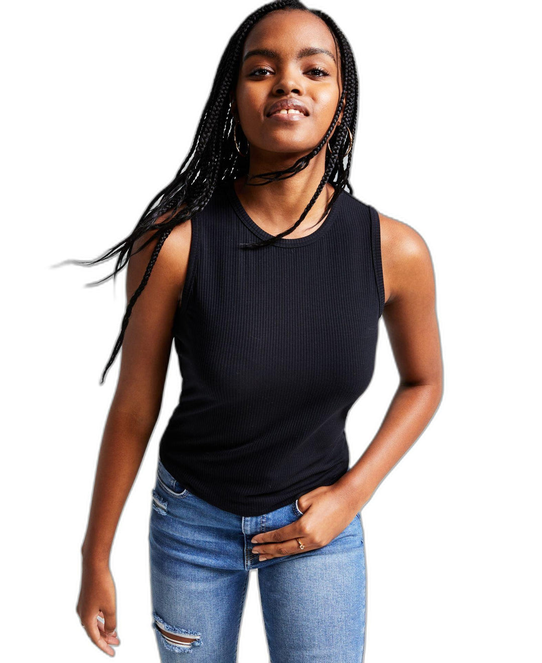 Women's Ribbed Knit Cropped Crewneck T-Shirt