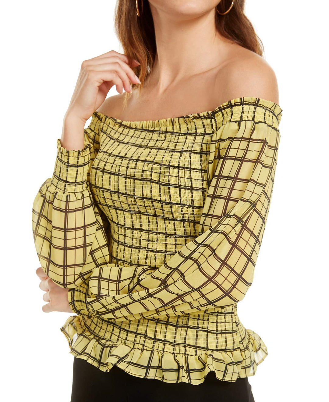 Bar III Plaid Smocked Peasant Top (Winter Plaid, XXL)