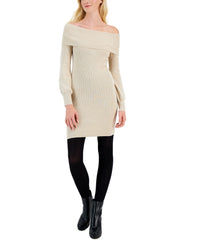 Juniors' Off-The-Shoulder Long-Sleeve Sweater Dress