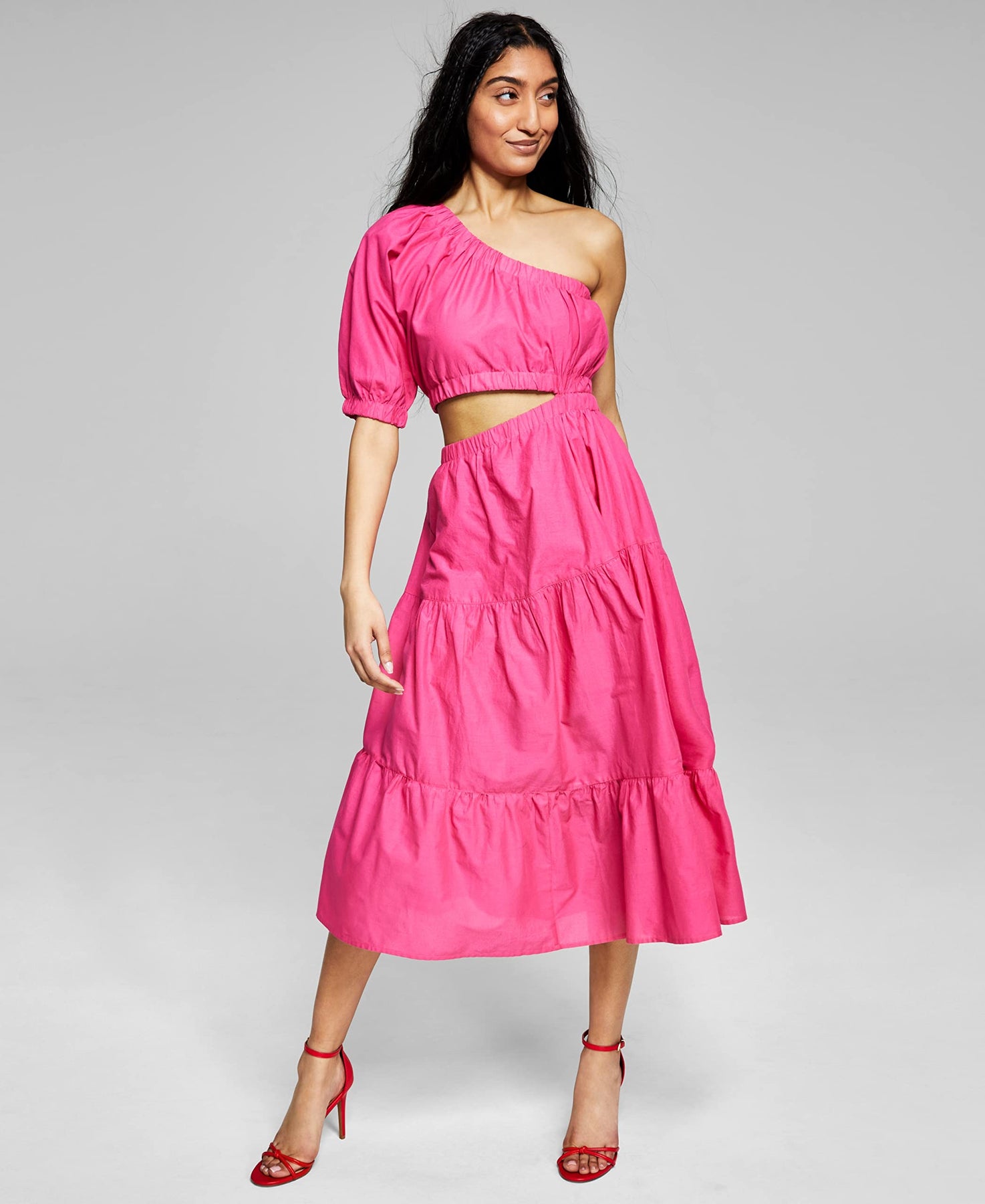 Now This Womens Cotton Cutout One Shoulder Dress