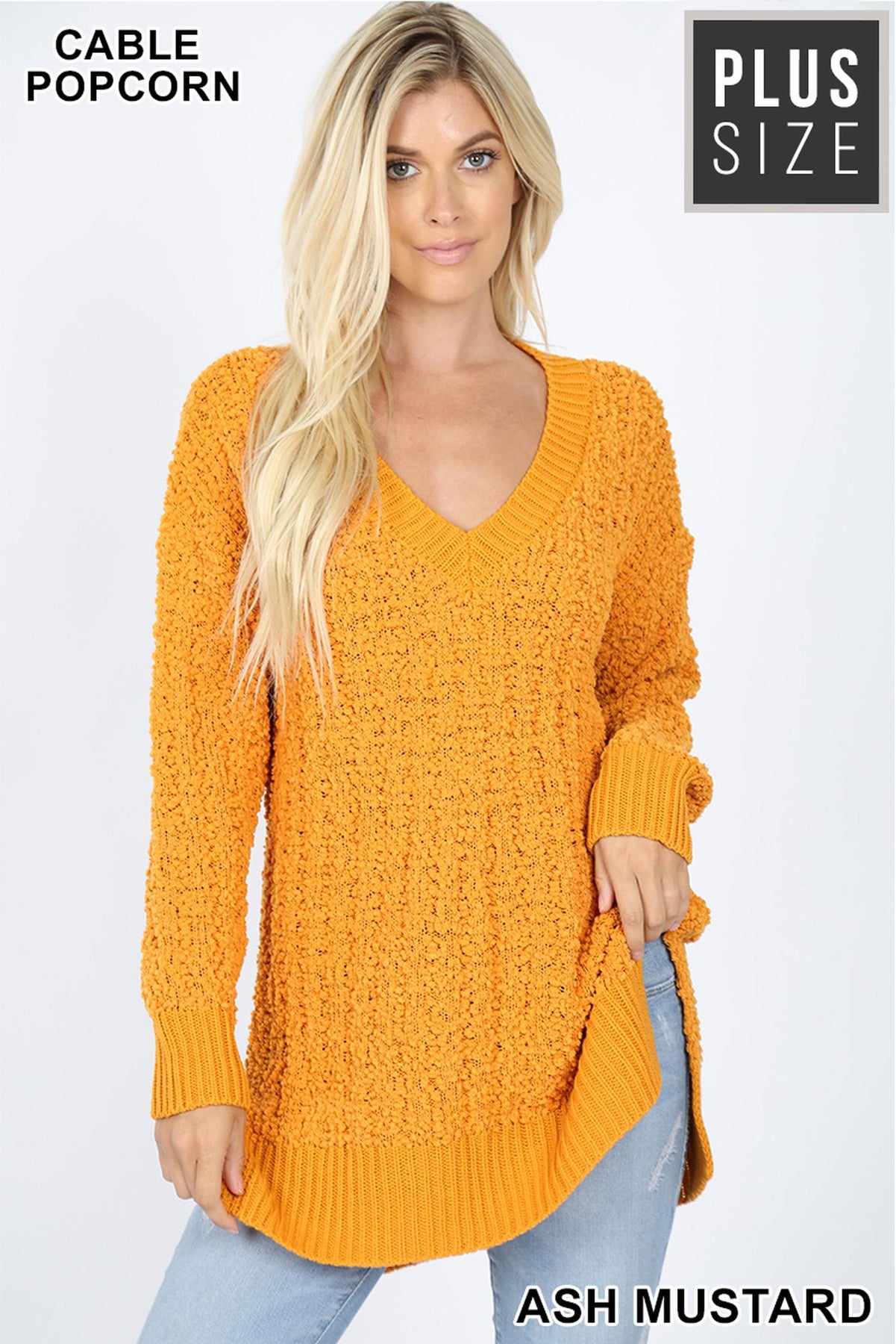 Chic and cozy style is at your fingertips with our Cable Knit Popcorn V-Neck Hi-Low Plus Size Sweater. Dress it up with heels and skinny jeans for a dressier casual look, or get extra snuggly by pairing it with any one of our leggings.