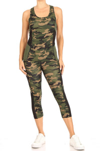 Camouflage Sport Mesh Top and Capri Set