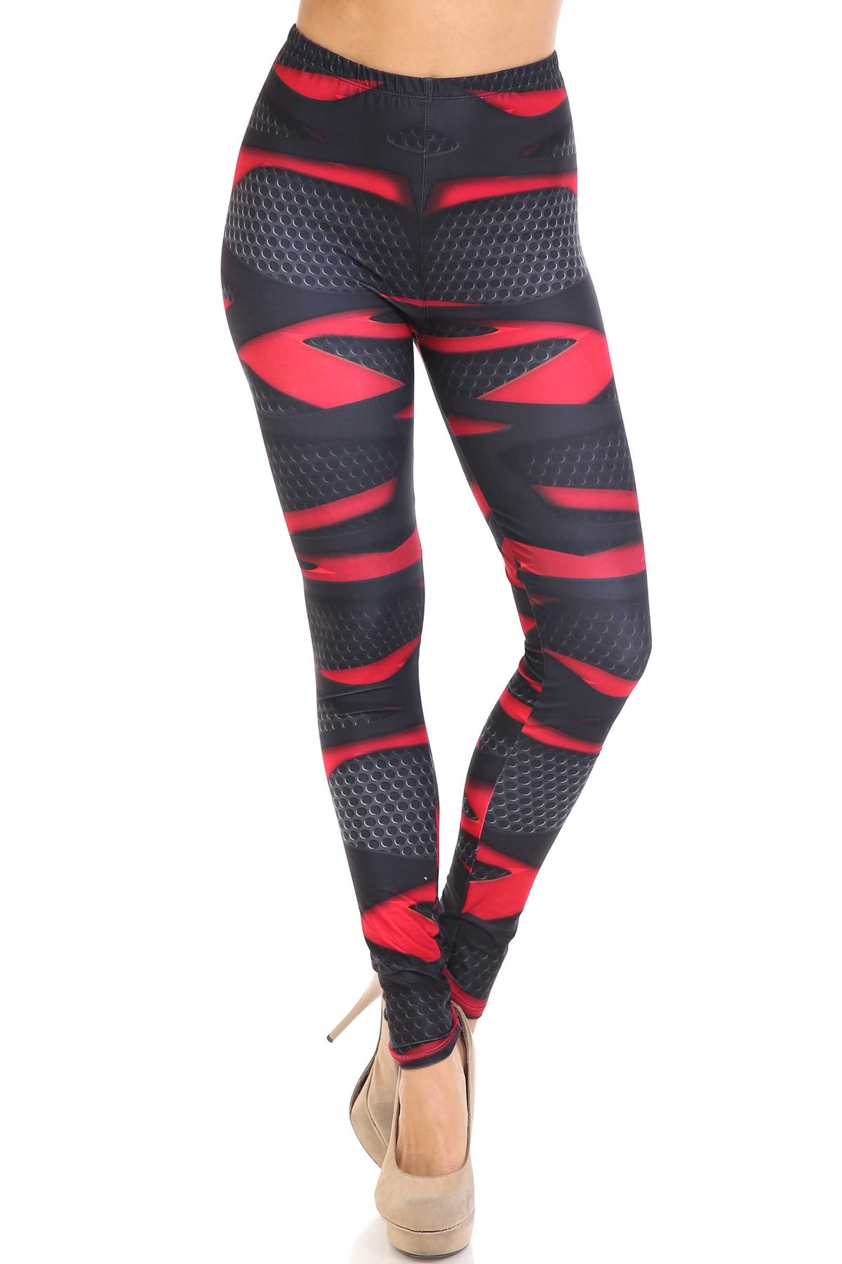 - Black and Red Cascading Body Hugging Wrap Style Leggings