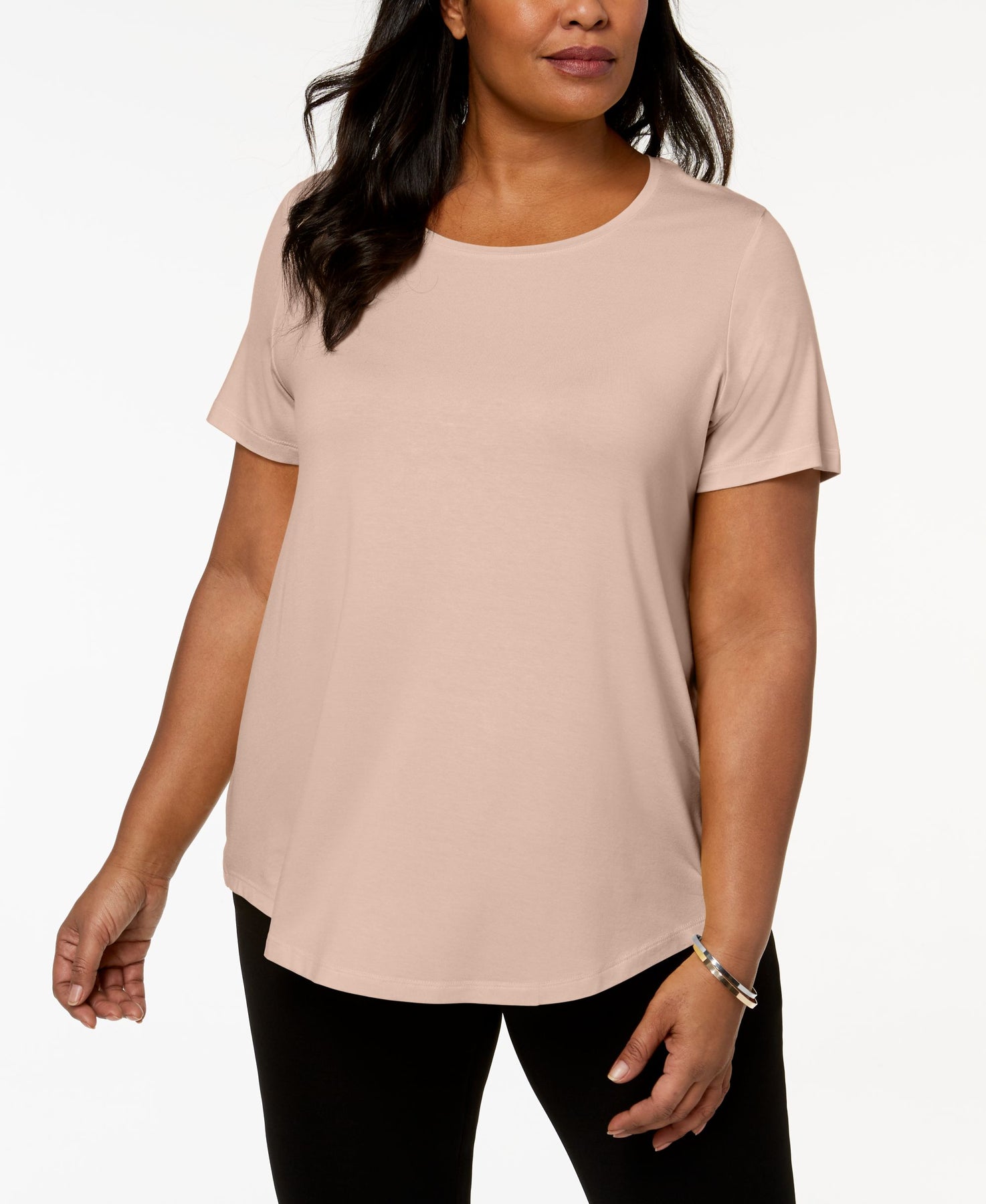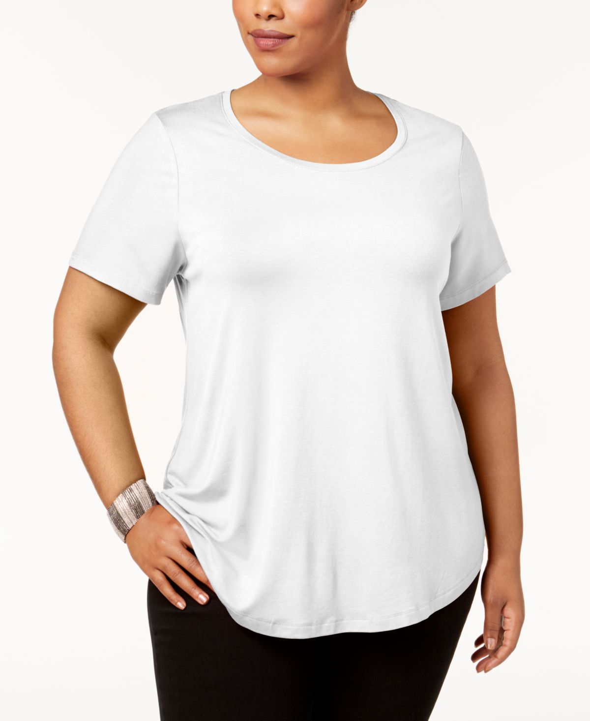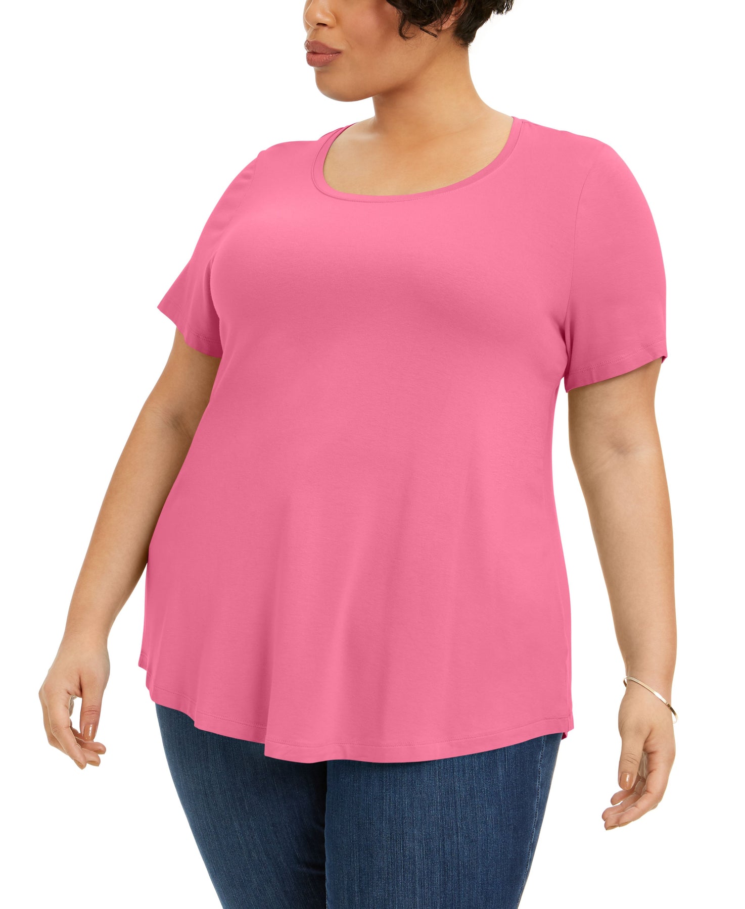 A casual or office essential, this plus size top from JM Collection is a versatile wardrobe-builder and comfortable classic. Scoop neckline Pullover styling Fitted Hits at hip Rayon/spandex Machine washable Imported Web ID: 14891275