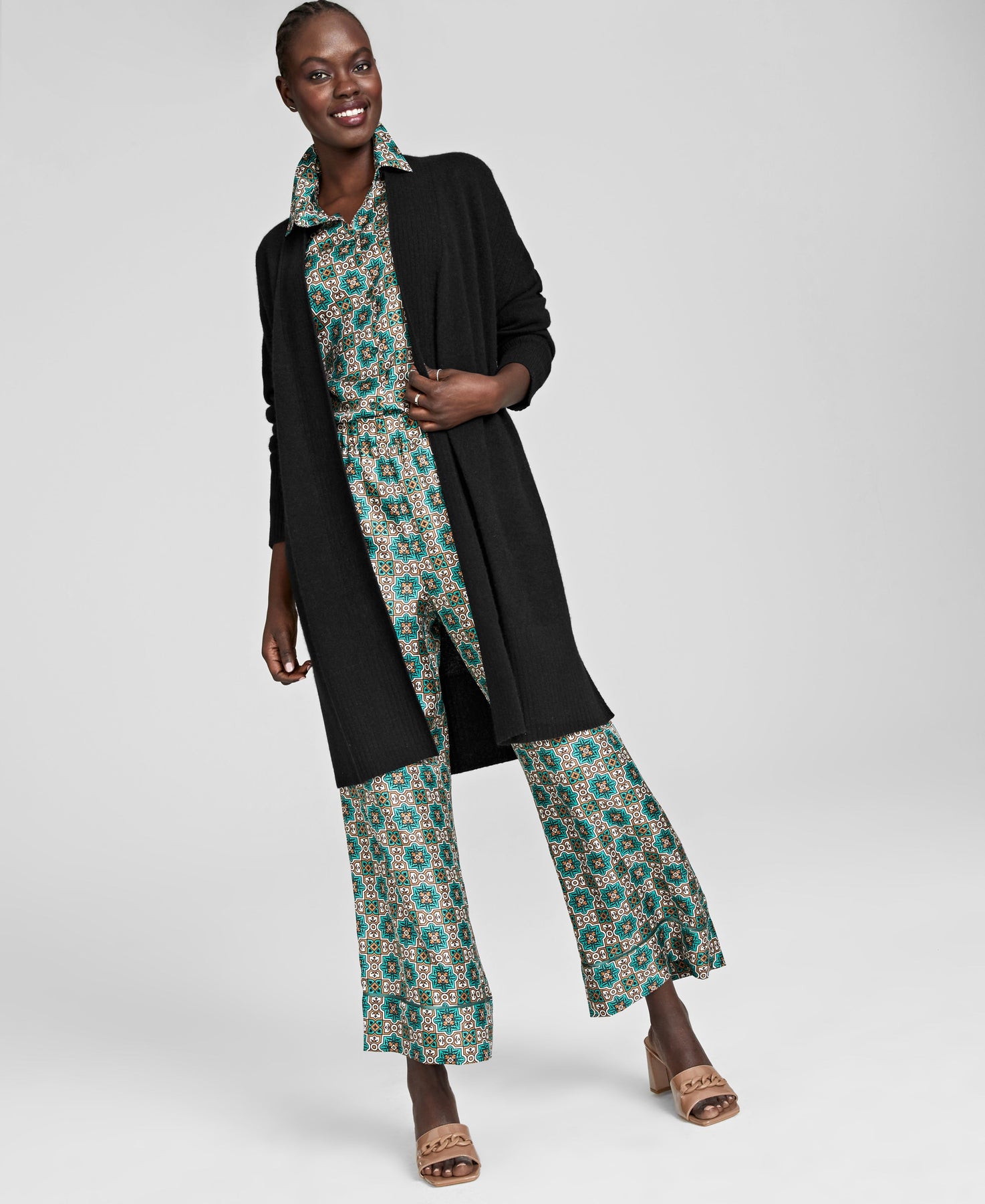 Designed with a modern elongated silhouette, this long sleeve sweater from Charter Club is finished with luxurious cashmere. Approx. 35" long Due to generous sizing, we suggest sizing down for the perfect fit Open-front Ribbed cuffs and hem; vents at sides Long sleeves Fibers originating from Kashmir goats Made in China 2-ply yarn for durability and to help reduce piling Cashmere Dry clean Imported Web ID: 13199230