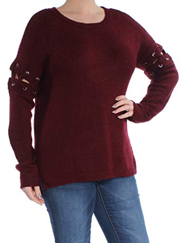 Almost Famous adds cool structural detail to this sweater with split arms. Lace-up details encircle the arms, closing the splits in chic style. Split arms Structural, lace details Long sleeves Knit pattern Acrylic