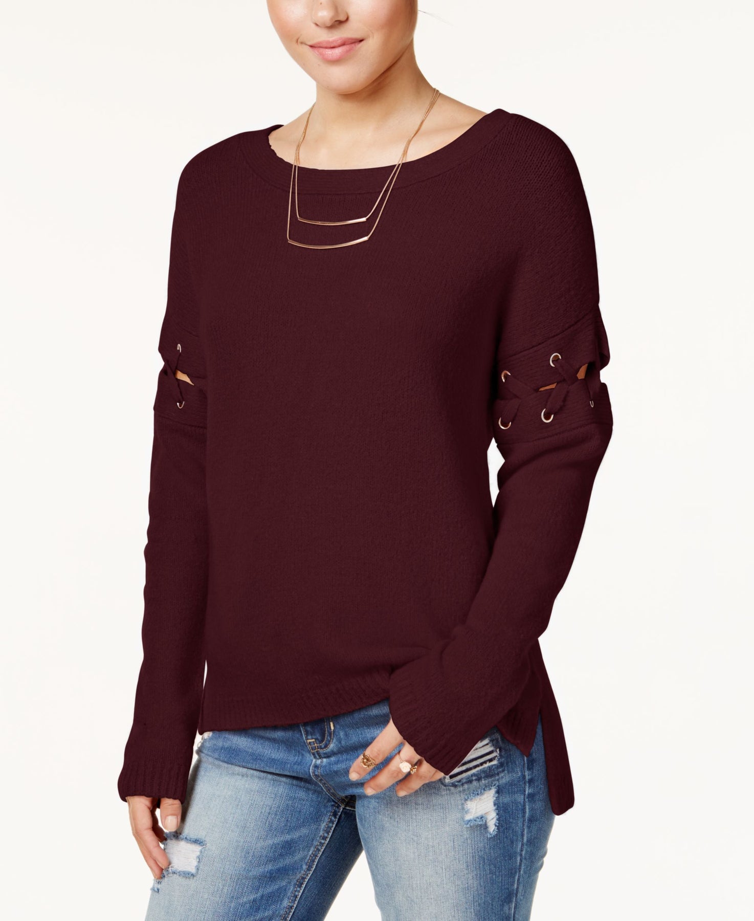 Crave Fame Juniors Lace Up High Low Sweater By Almost Famous