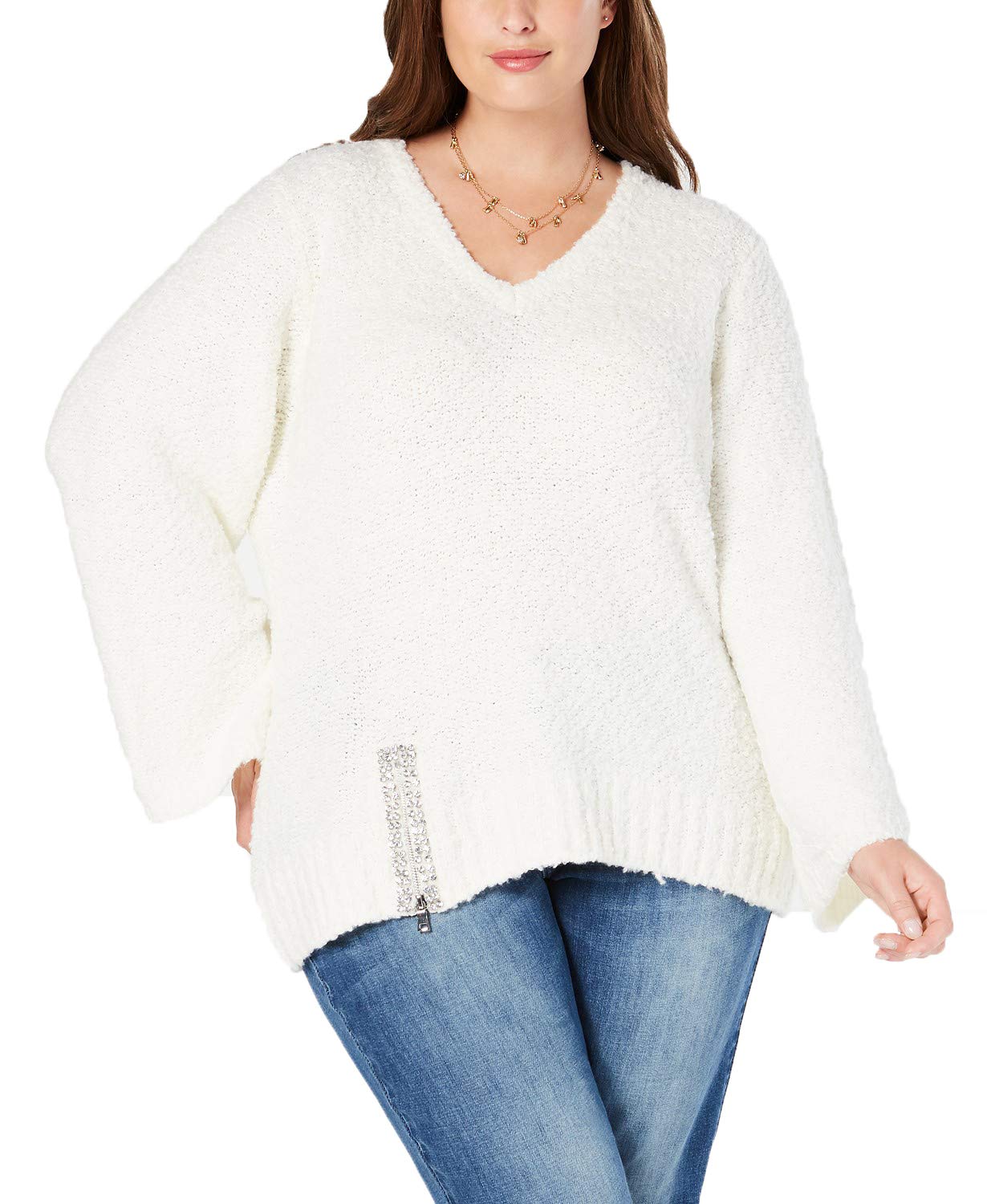 I.N.C. Plus Size Rhinestone-Zipper Sweater