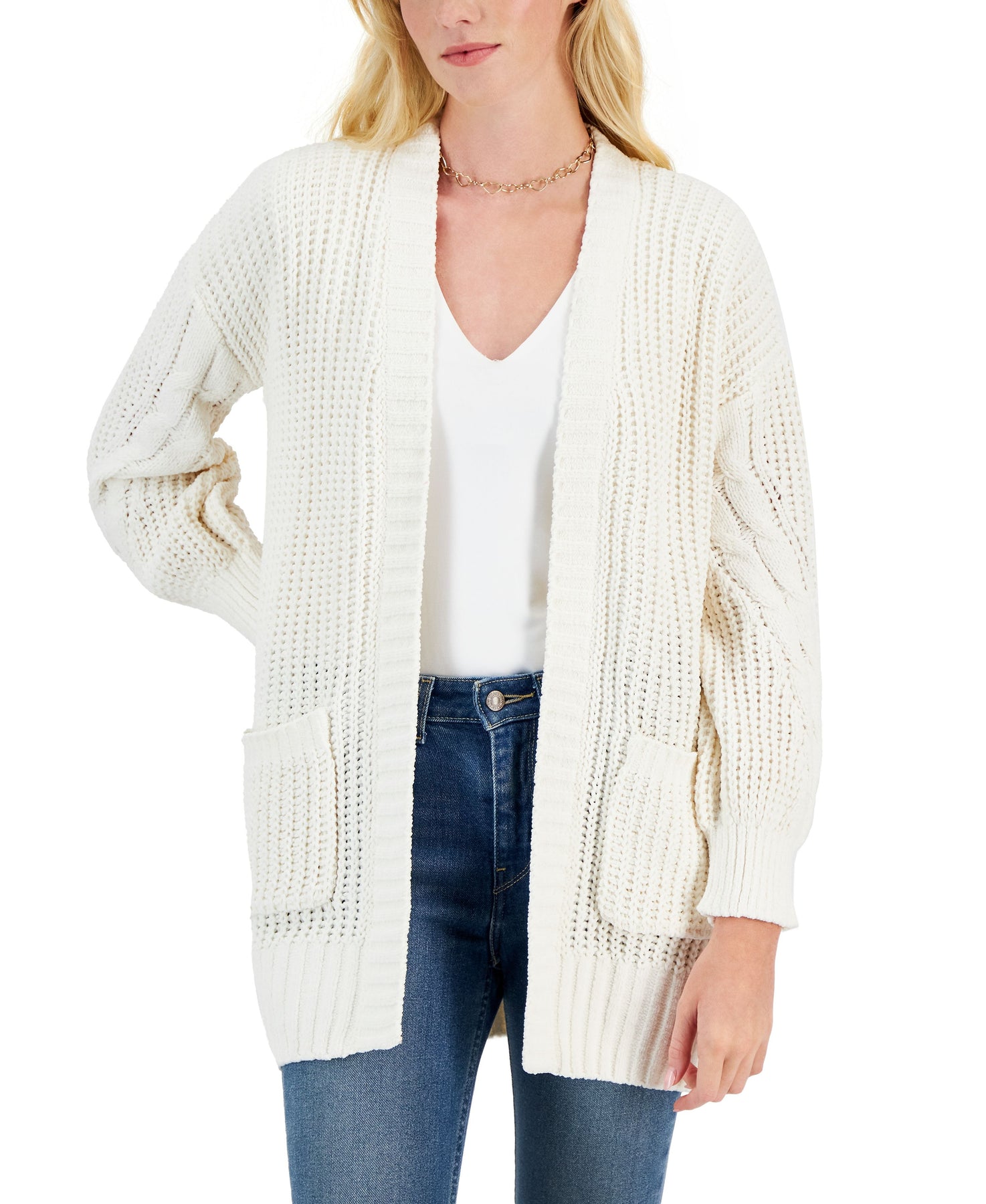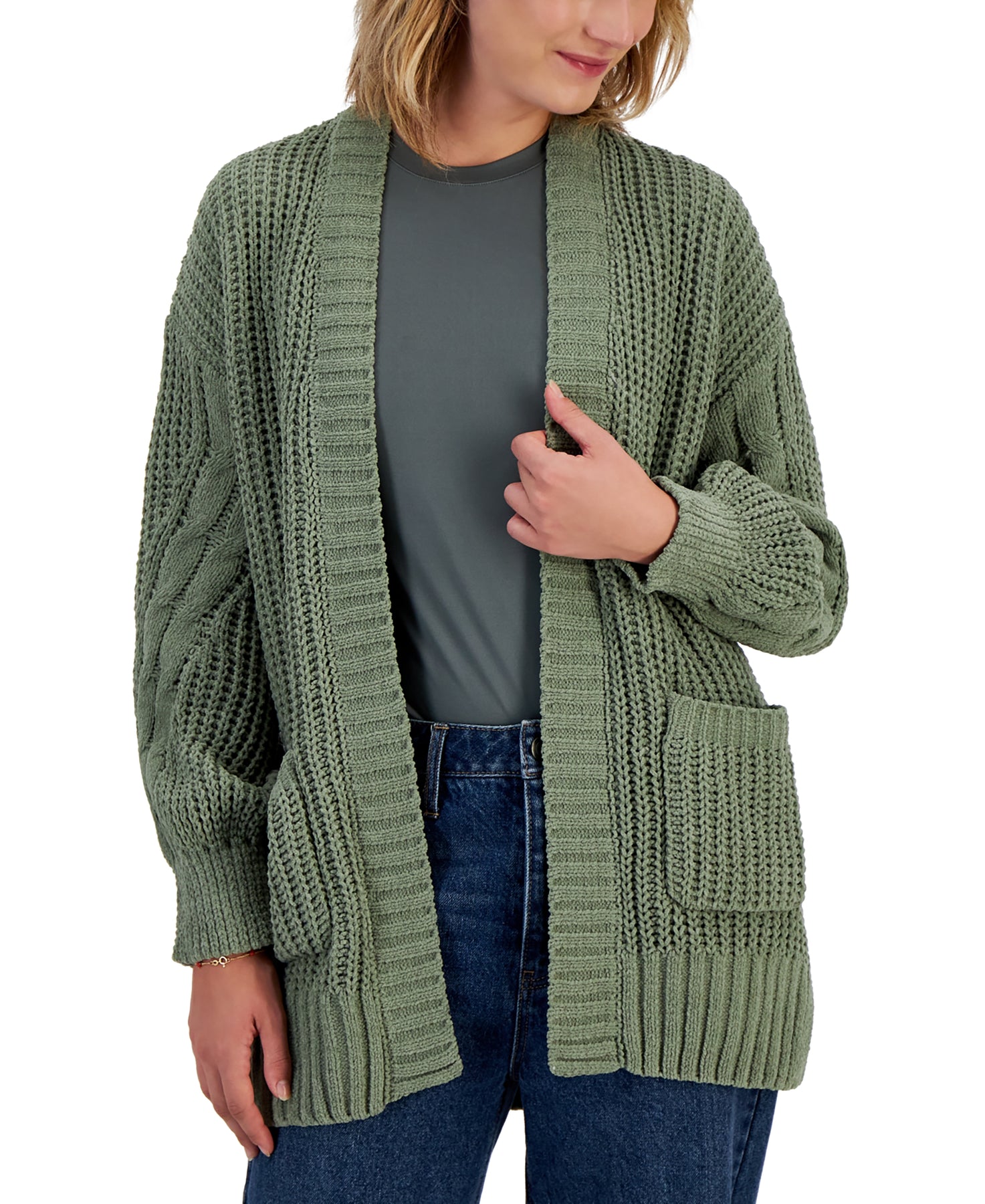 Juniors' Cozy Chenille Cable-Knit Cardigan Sweater