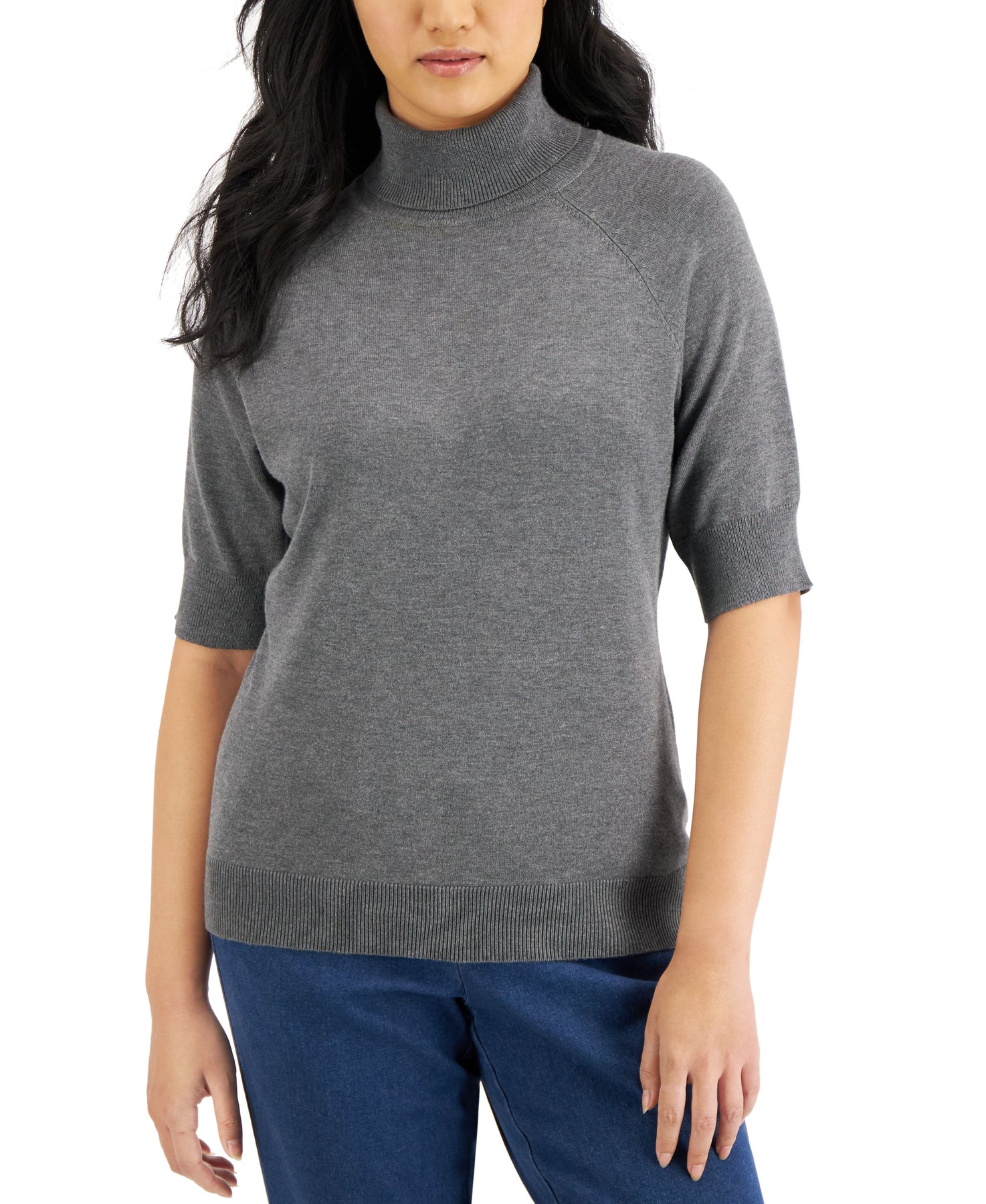 Karen Scott Elbow-Sleeve Turtleneck Sweater