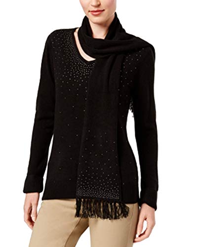 Karen Scott Luxsoft Studded Detachable Scarf Sweater