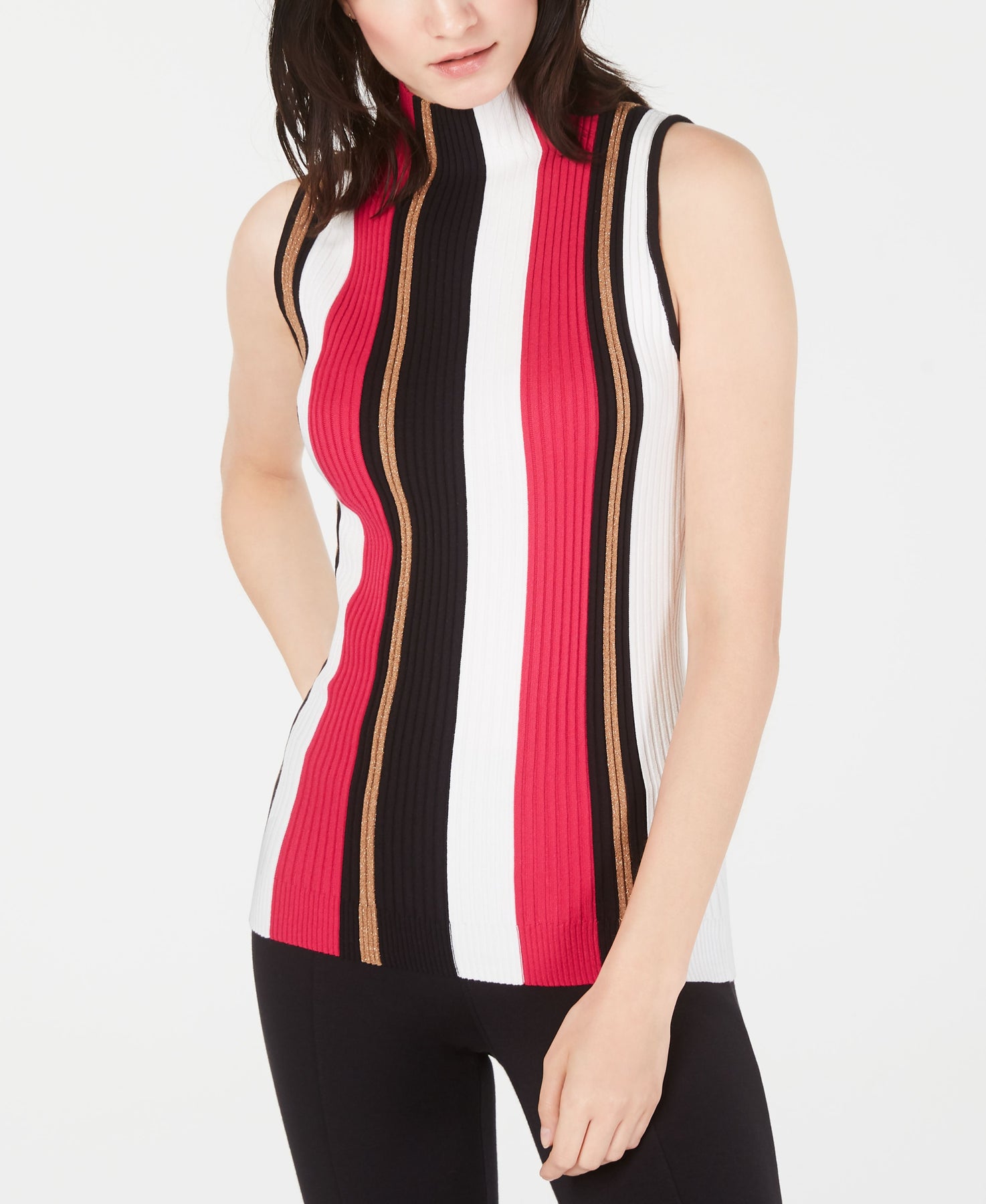 Ribbed Mock Neck Sleeveless Sweater