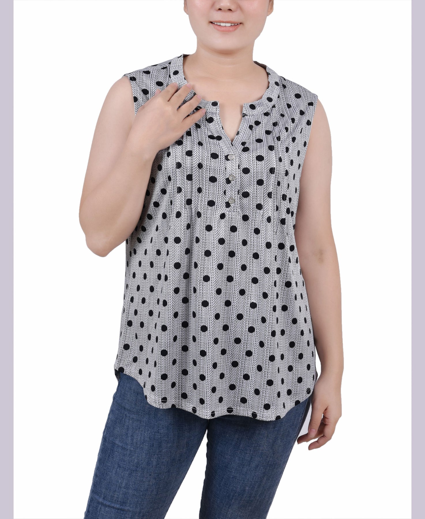 Petite Sleeveless Knit Y-neck Top