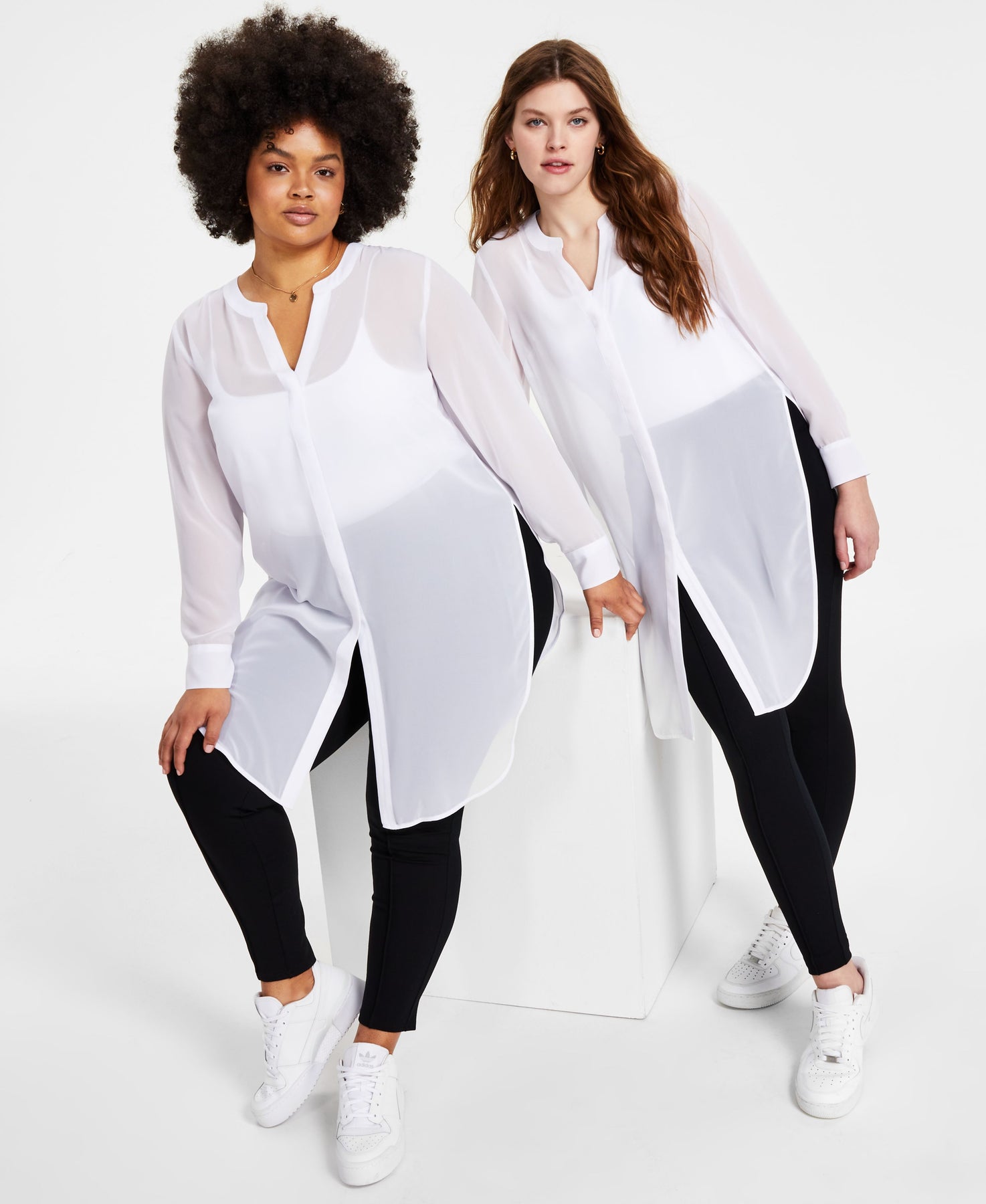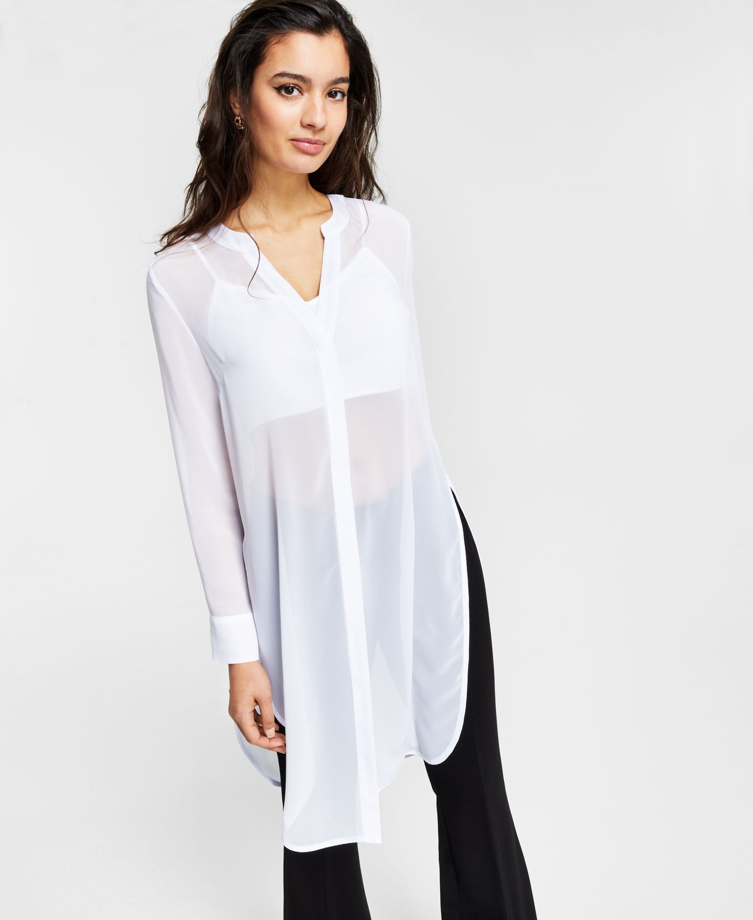 Petite Semi-Sheer Tunic Blouse