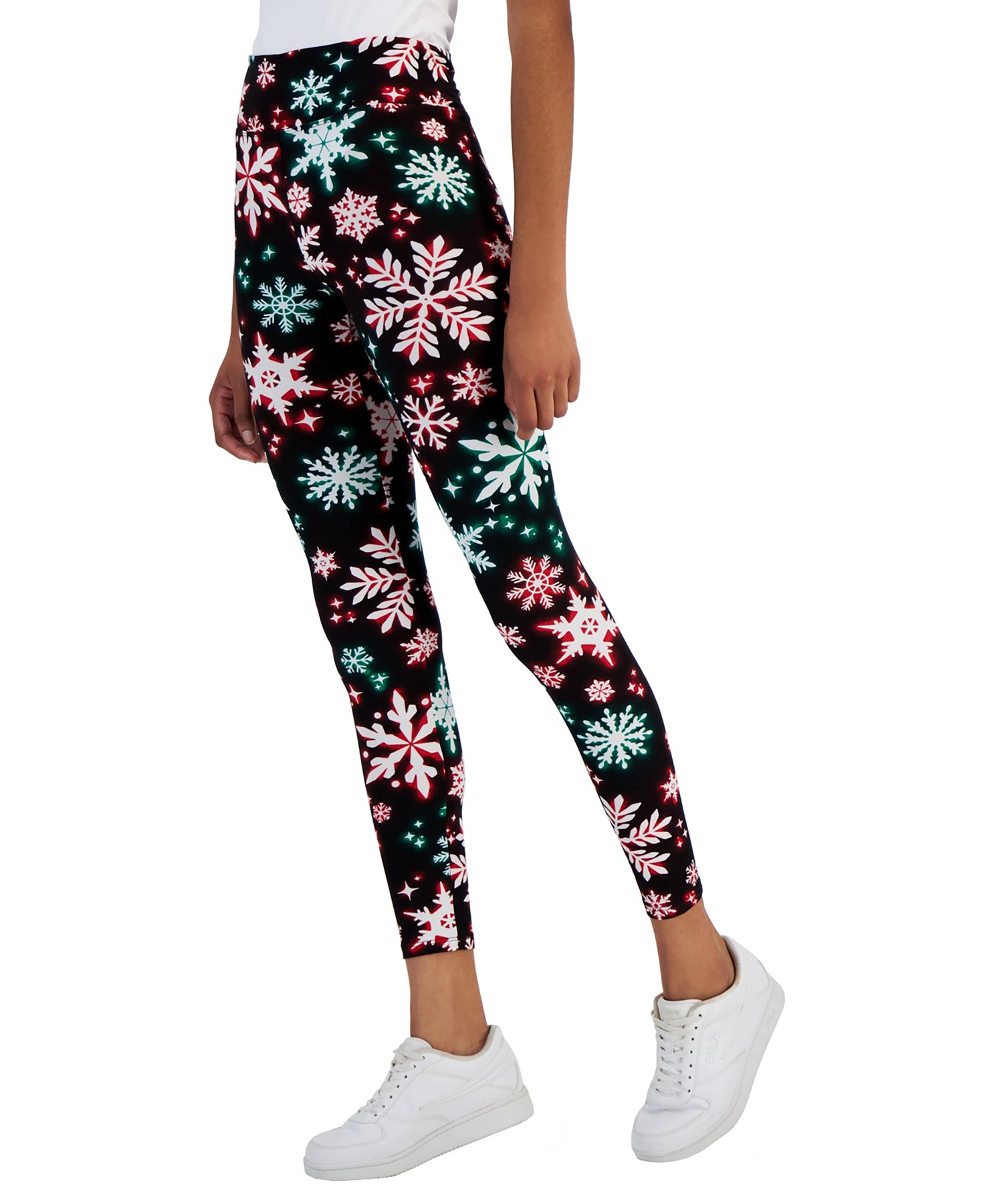 Step into the holiday season with festive flair and ultimate comfort in these juniors' leggings from Derek Heart. Featured in playful prints, you'll be rocking the holiday spirit from head to toe. Approx. model height is 5'10" and she is wearing a size medium Approx. inseam: 28" High rise Pull-on style Allover holiday prints Juniors' sizes run smaller than women's sizes. Size up for the perfect women's fit. See size chart. Polyester, spandex Machine washable Imported Web ID: 16810982