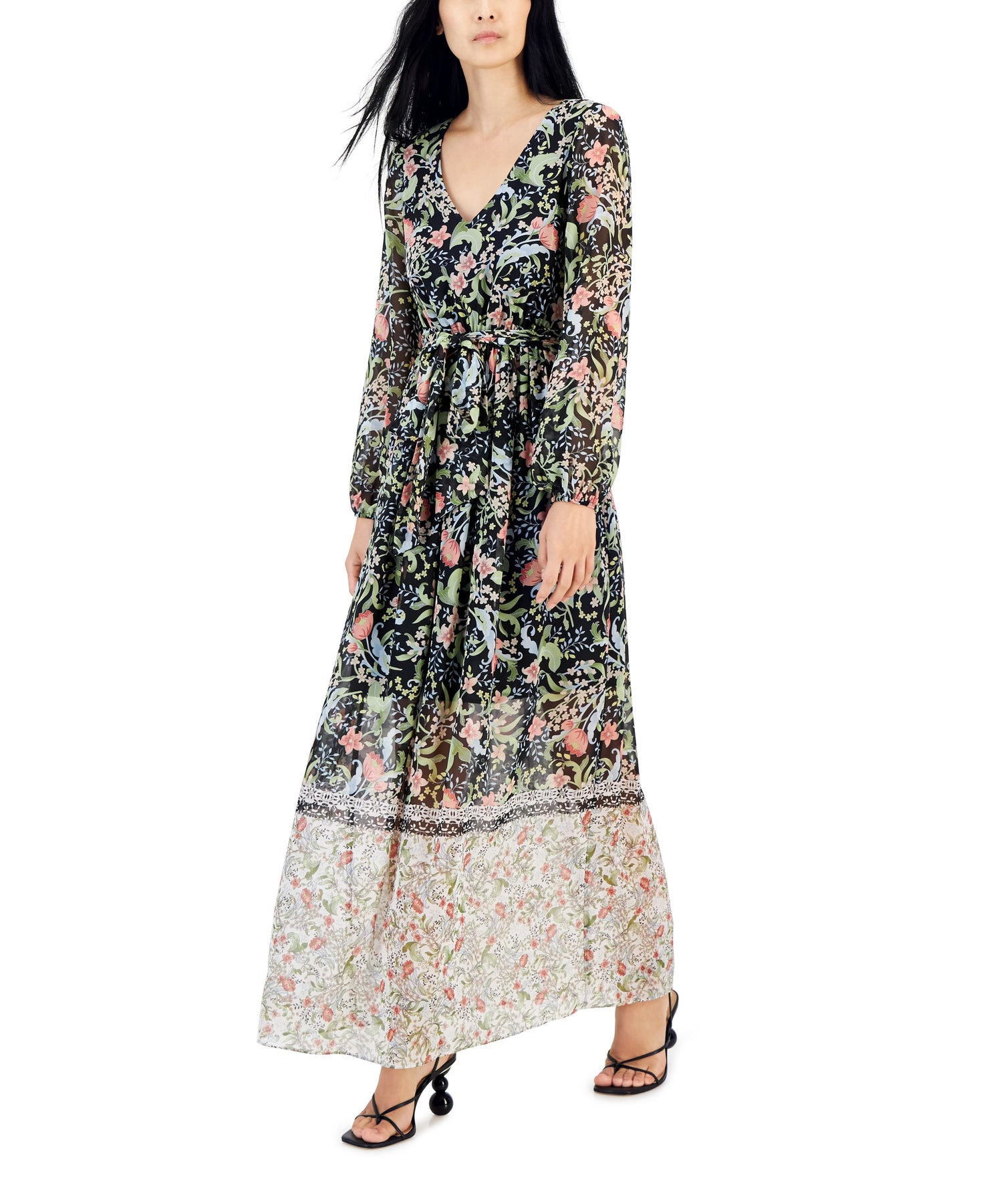 INC International Concepts Floral Print Tie Waist V Neck Maxi Dress