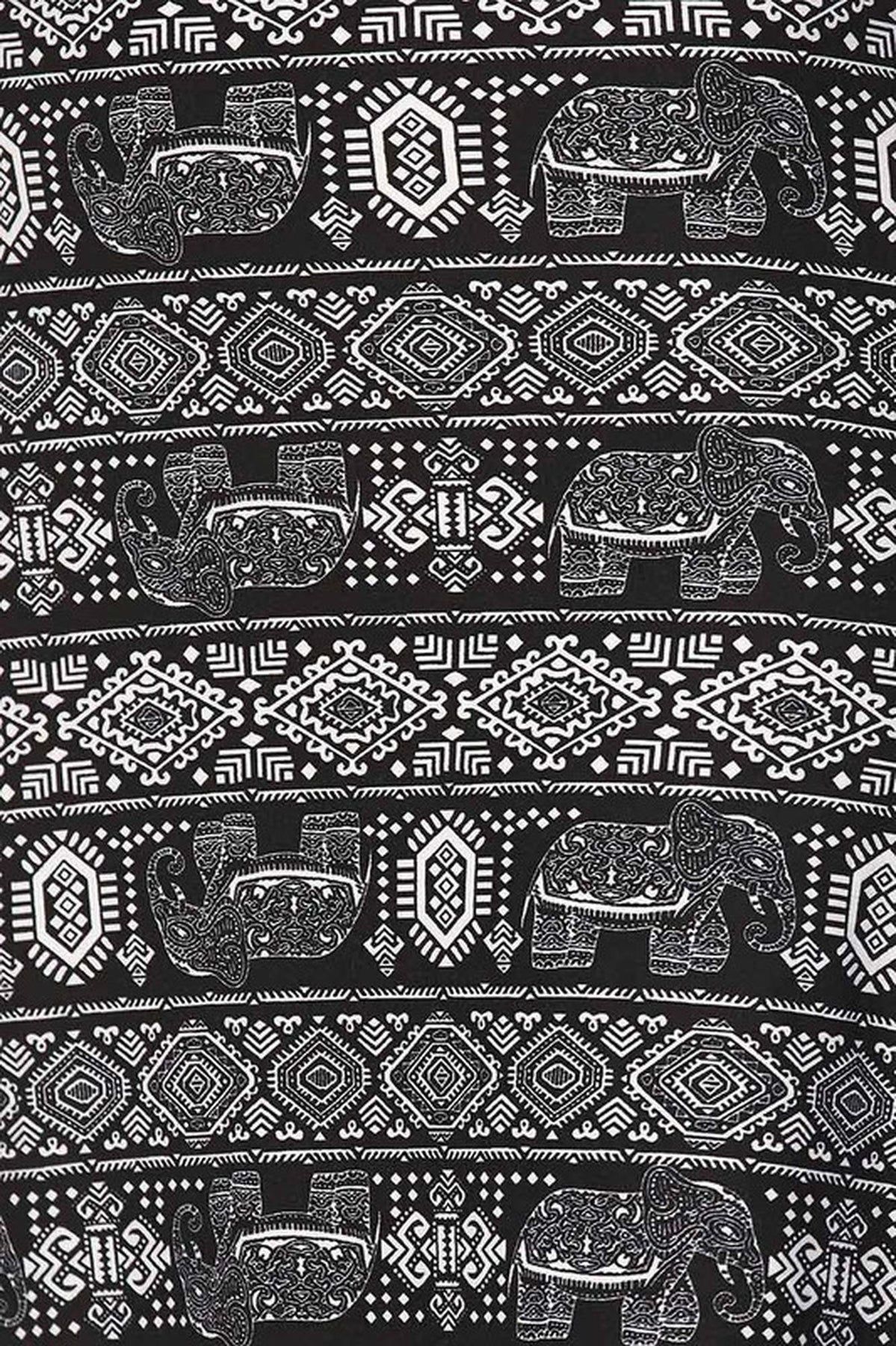 • An On Trend Tribal Black Elephant Fabric Print