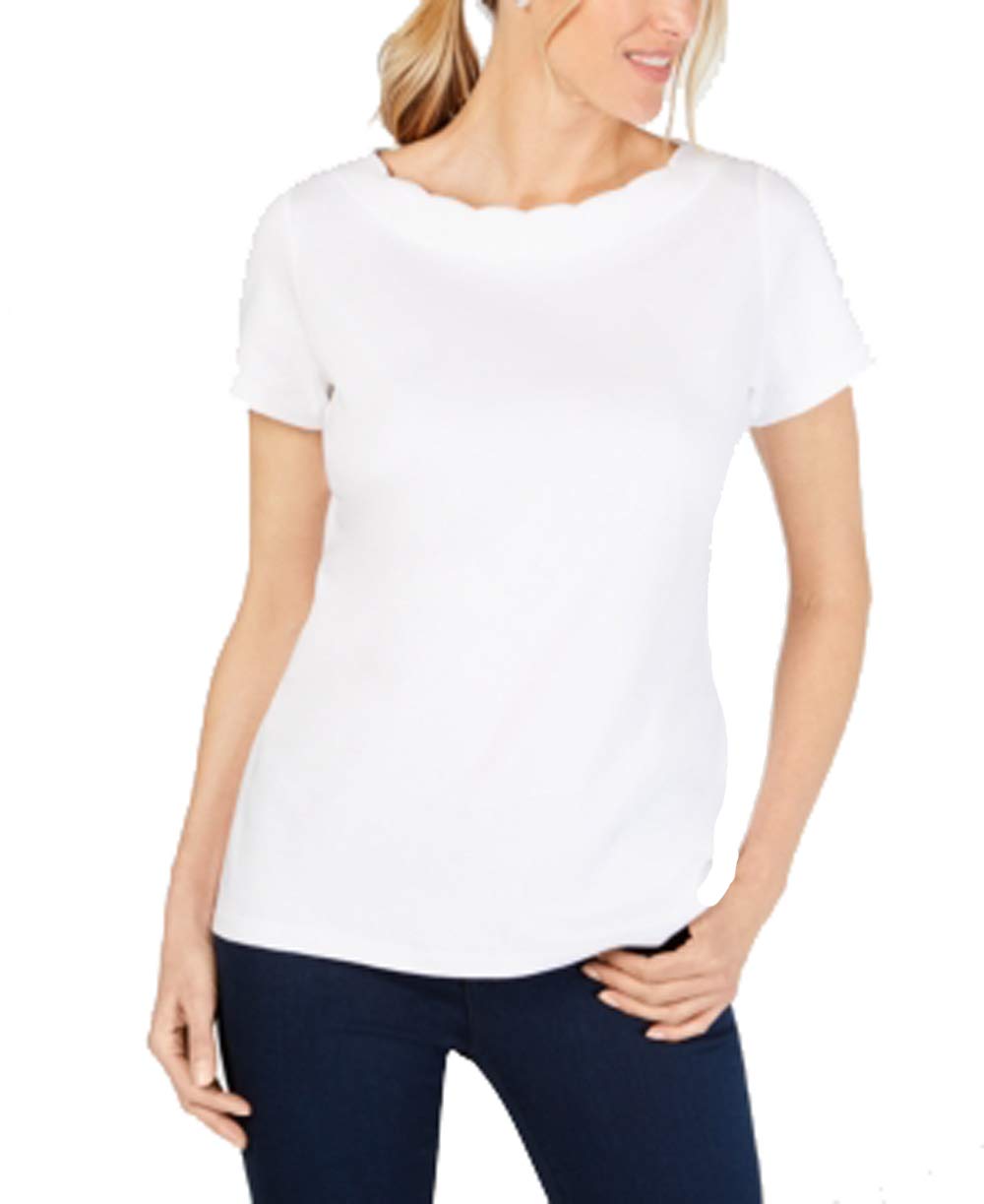 Karen Scott Scallop Neck Cotton Top