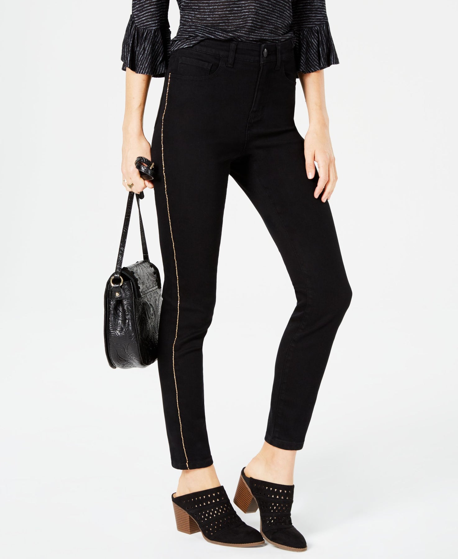 Style & Co Petite Chain Embellished High Rise Skinny Jeans