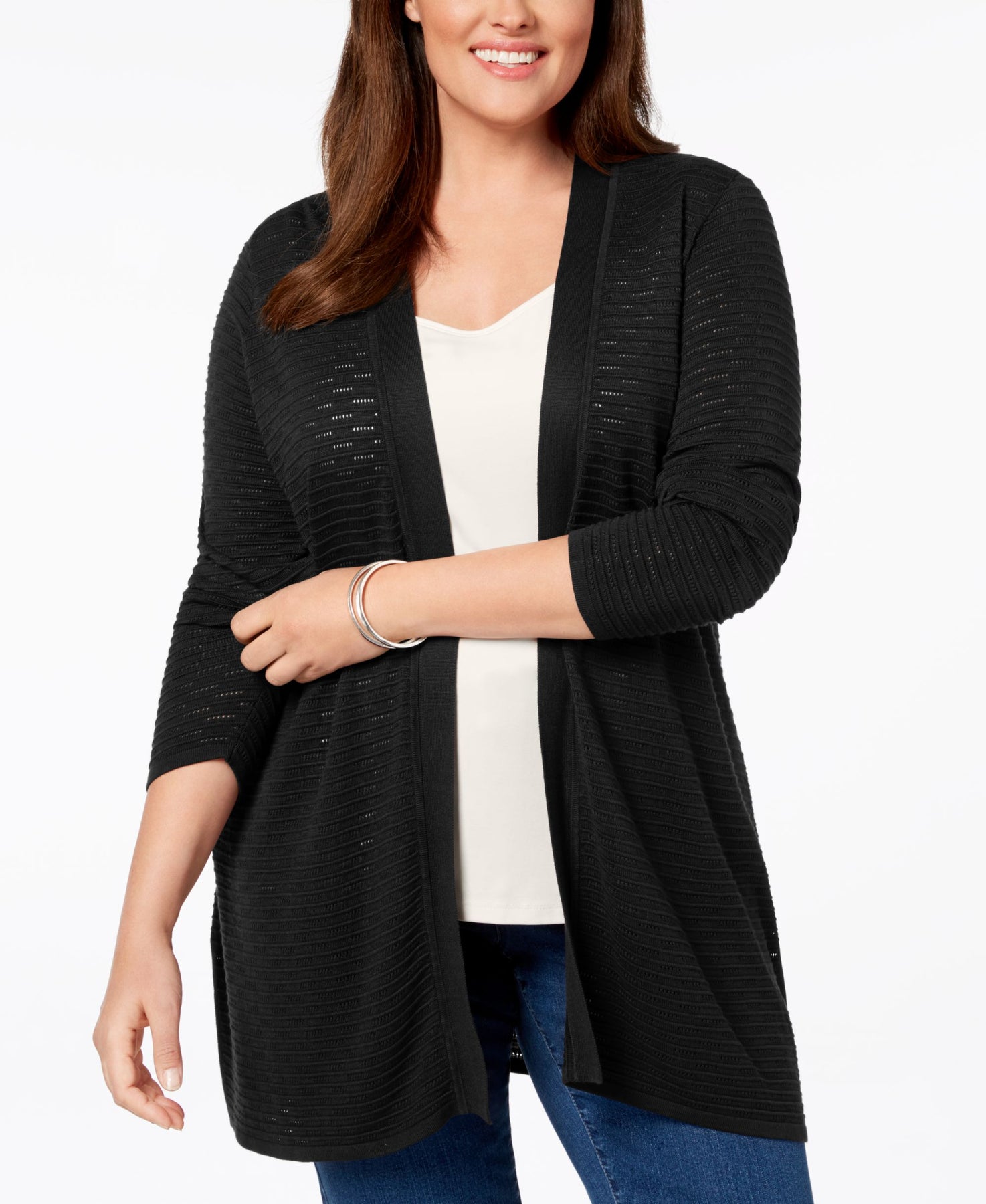 Charter Club Plus Size Open Front Ribbed Knit Cardigan