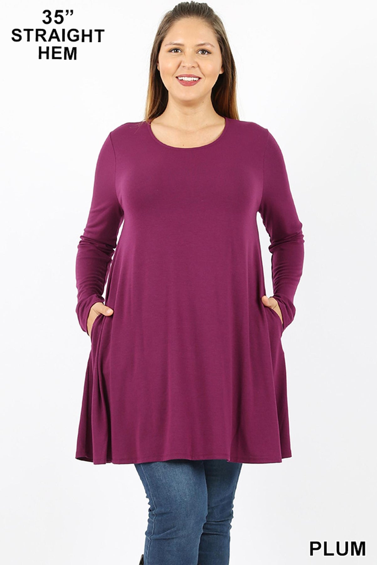 Long Sleeve Plus Size Swing Tunic with Pockets