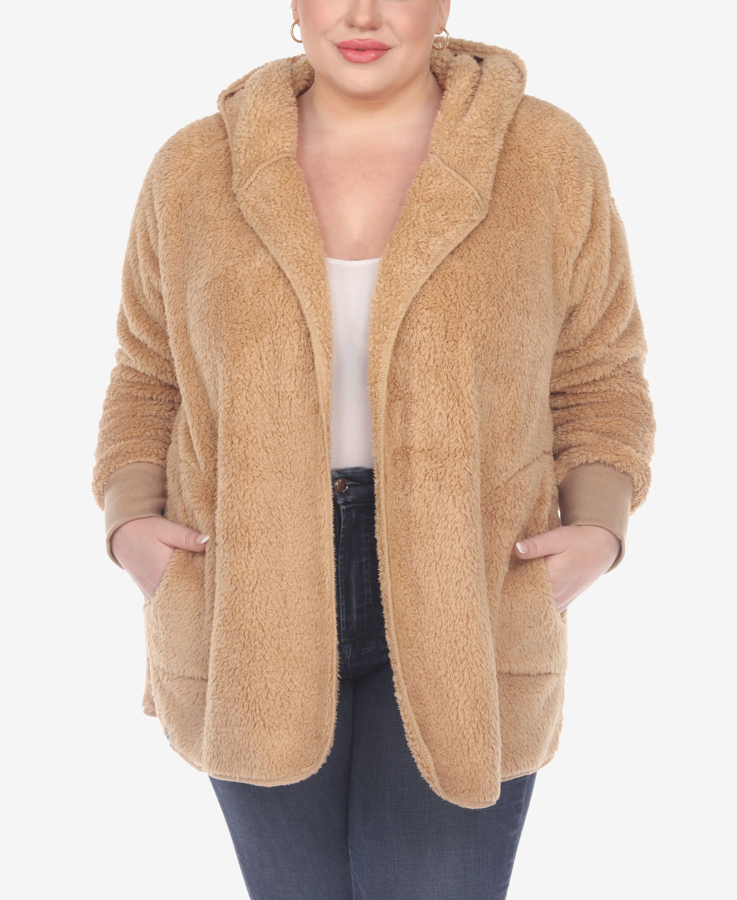 Plus Size Plush Hooded Cardigan Jacket with Pockets