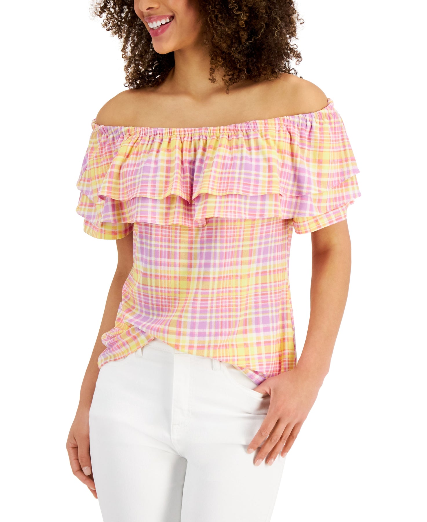Charter Club Cotton Ruffled Off The Shoulder Top