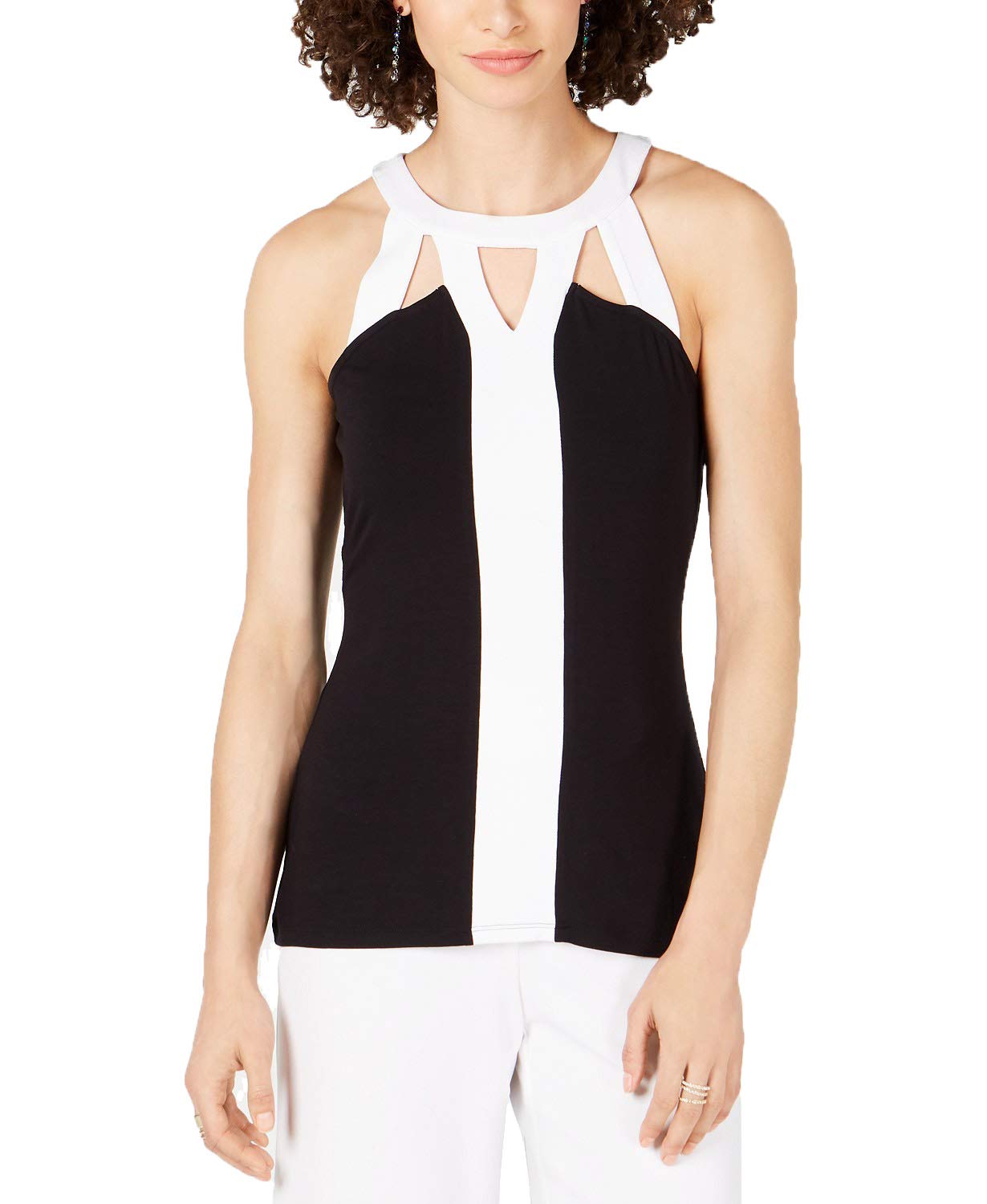Put together a boldly stylish look starting with this colorblocked top from I.N.C. International Concepts, designed with cutouts at the neckline for a modern touch. Hits at hip Crewneck with cutouts Colorblocked design Rayon/spandex Machine washable Imported Web ID: 8429094