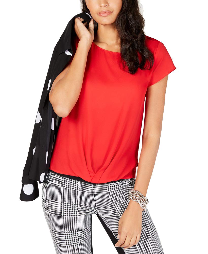 INC International Concepts gives your weekday style a subtle update with this chic, high-low top featuring a draped twist at the front hem. Boat neckline Draped twist detail at front hem; high-low hem Hits at hip Front: polyester; back: rayon Machine washable Imported Web ID: 5368588